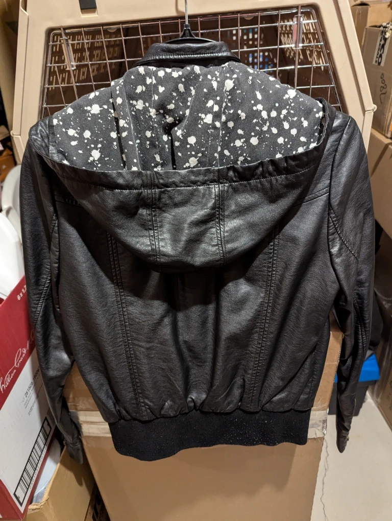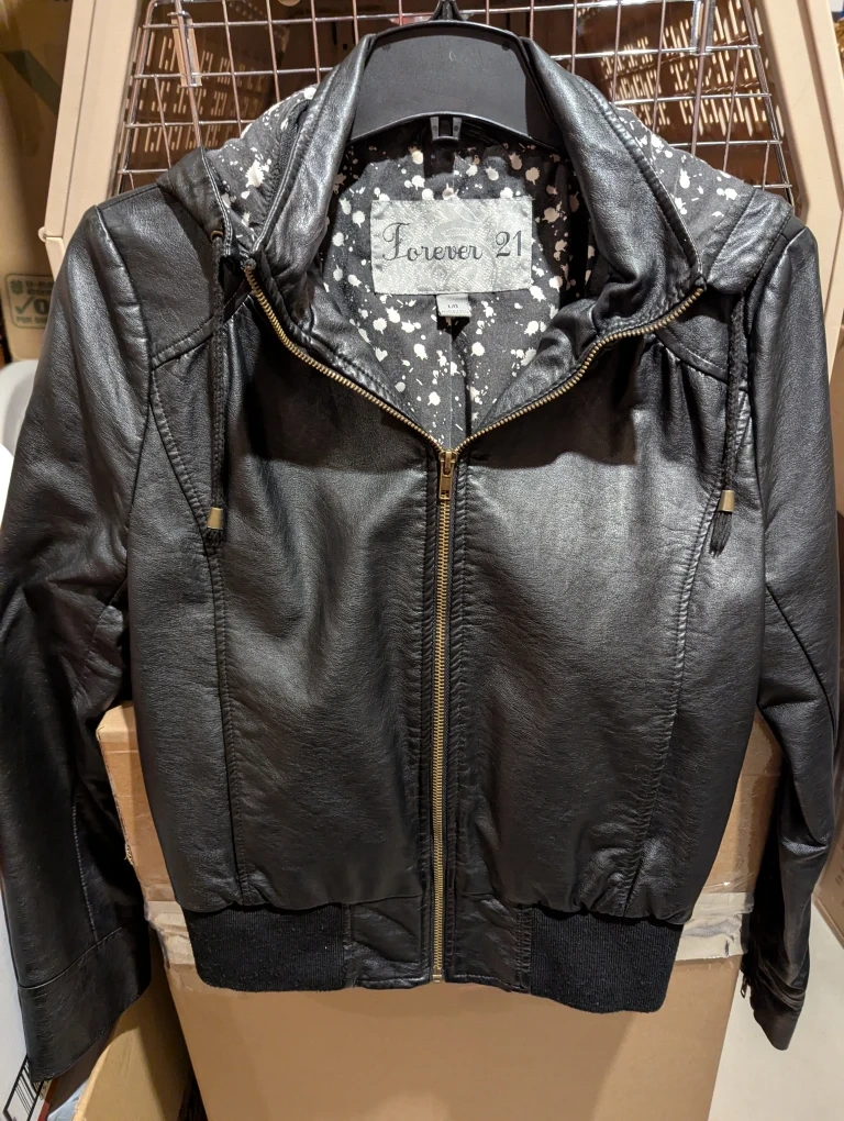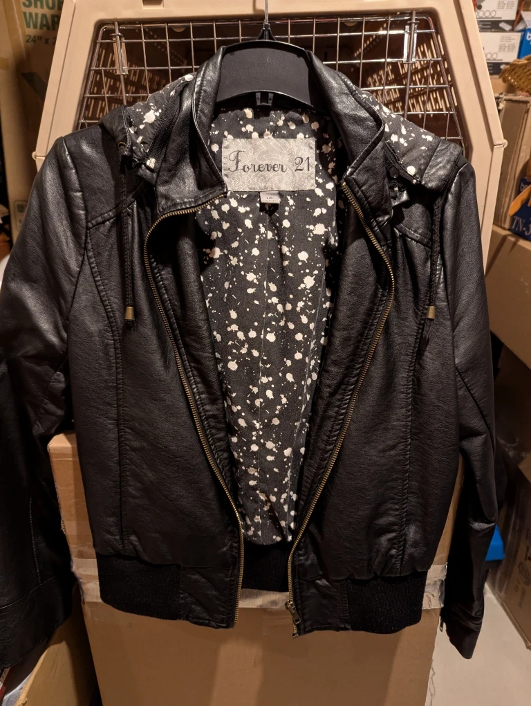 44Faux leather black women's jacket for sale. Large size. Only worn a handful of times. From a smoke and pet free home. $20 cash or best offer. for pickup in SE near McKenzie Towne.