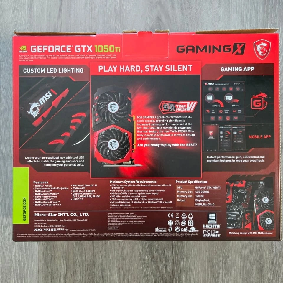 Buy & SellMSI GeForce GTX 1050 Ti Gaming 4GMSI GeForce GTX 1050 Ti Gaming 4G$140Box opened to inspect contents and to verify it is working. Pick up at Winston Churchill & EglintonWHERE TO MEETCheck LocationView MapSELLERKay TeeChurchill Meadows100 reviews0 chats·0 favorites·38 viewsSEND CHAT TO SELLERHi Kay Tee! I’m interested in your listing.Hi Kay Tee! I’m interested in your listing.Get the Karrot app to chatSign In to chat