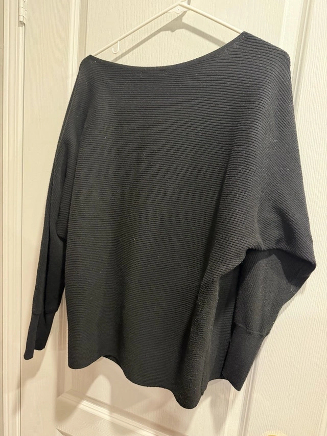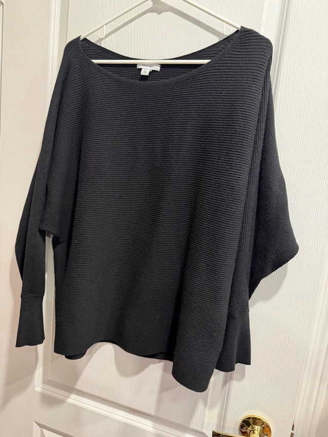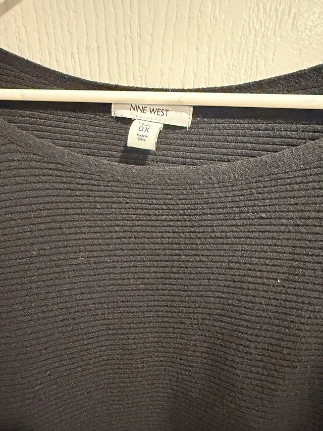 This is a used Nine West black sweater, size 0X. It's a stylish and comfortable addition to any wardrobe. The sweater is in good condition, ready to be worn and enjoyed. Features: Brand: Nine West, Colour: Black, Size: 0X, Style: Batwing Sleeve. Looking at similar sweaters on Kijiji, a reasonable price range would be $20-$40. Given its good condition, I'm pricing it at the higher end. If you're reading this, it's still available!