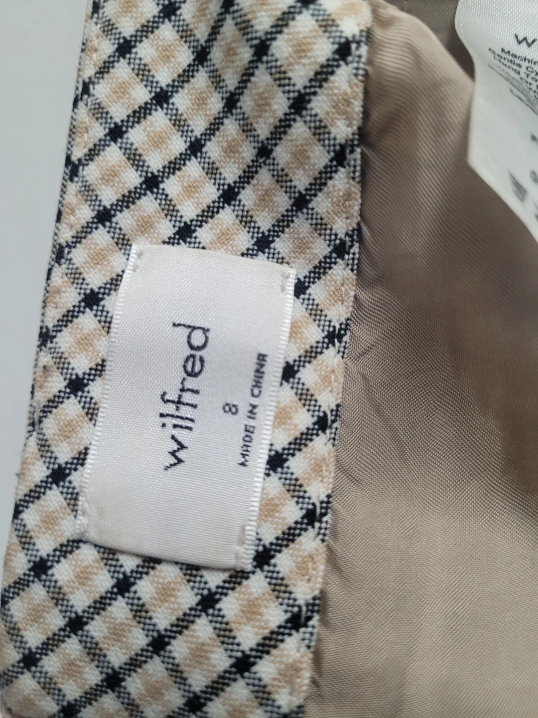 Buy & SellWilfred Plaid Mini Skirt Size 8Wilfred Plaid Mini Skirt Size 8$15This is a Wilfred mini skirt with a classic plaid pattern. It's size 8 and made in China. Machine wash cold, gentle cycle. No bleach.ConditionGoodSize8WHERE TO MEETCheck LocationView MapSELLERverifiedWendyCape Horn29724 reviews0 chats·0 favorites·3 viewsSEND CHAT TO SELLERHi Wendy! I’m interested in your listing.Hi Wendy! I’m interested in your listing.Get the Karrot app to chatSign In to chat