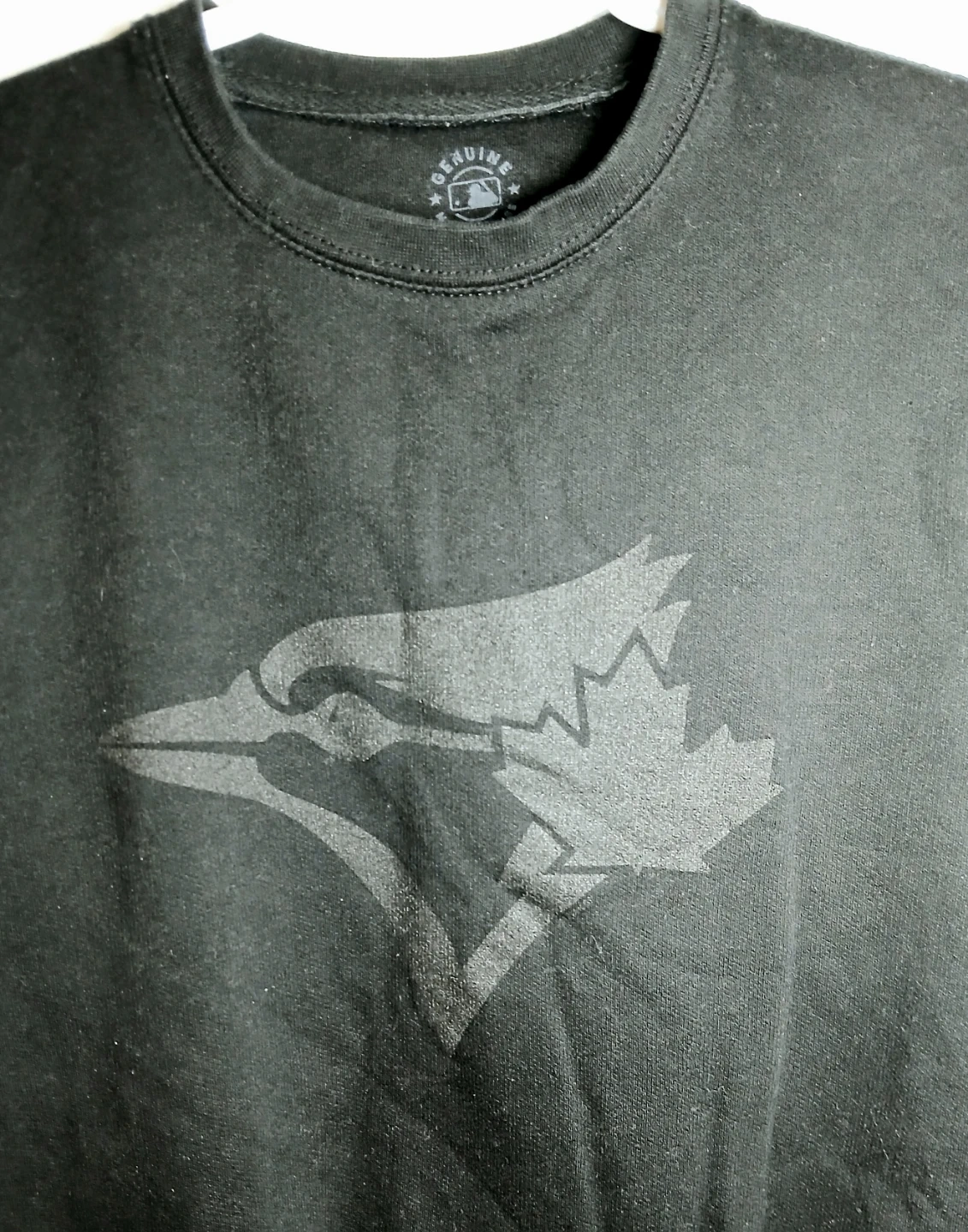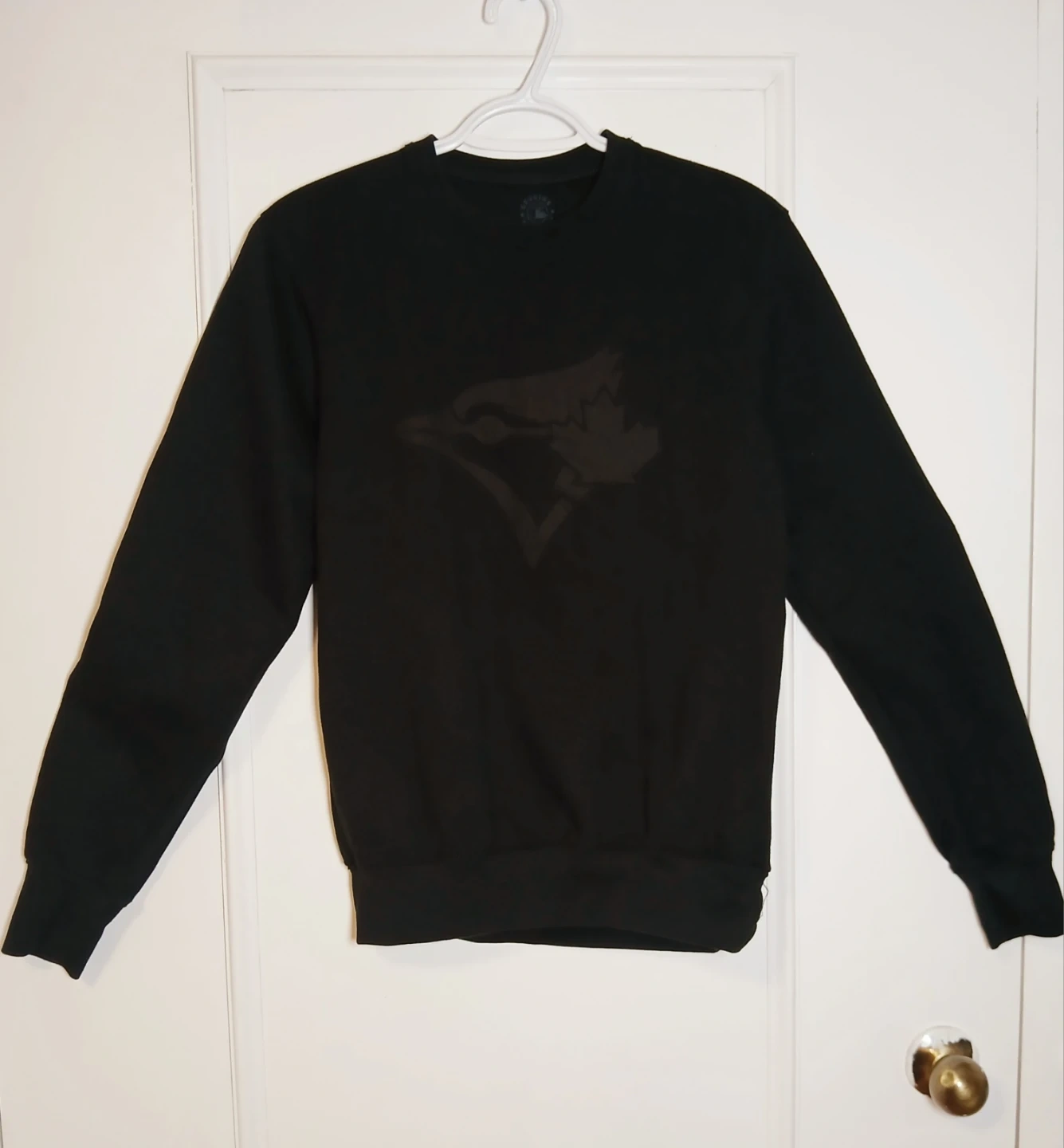 Black crewneck sweatshirt with a Toronto Blue Jays graphics print on the front. Size small. Available for pick up in Meadowvale area, closest intersection Brittania and Glen Erin