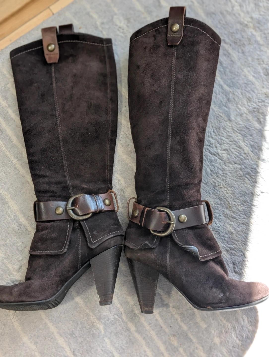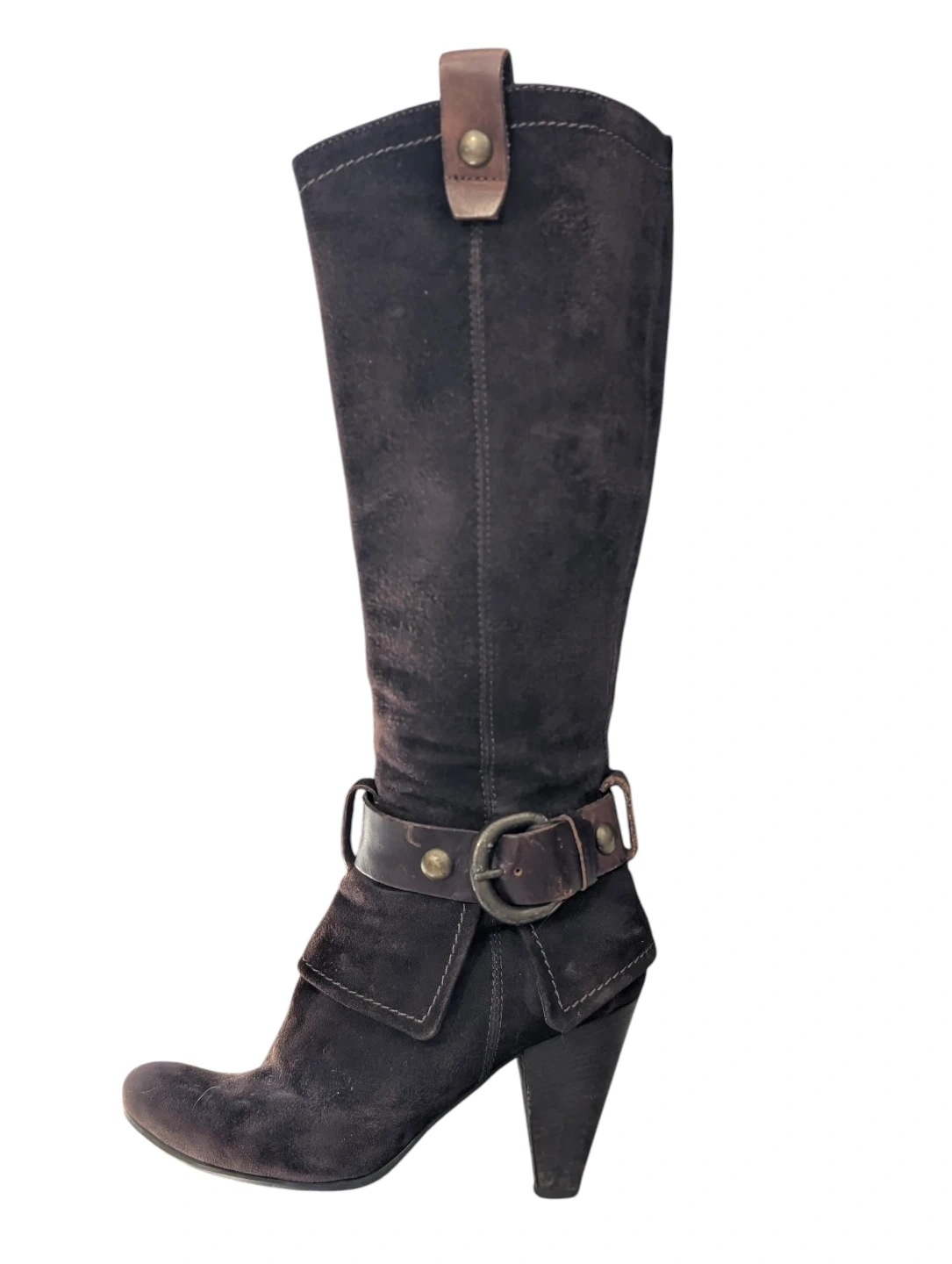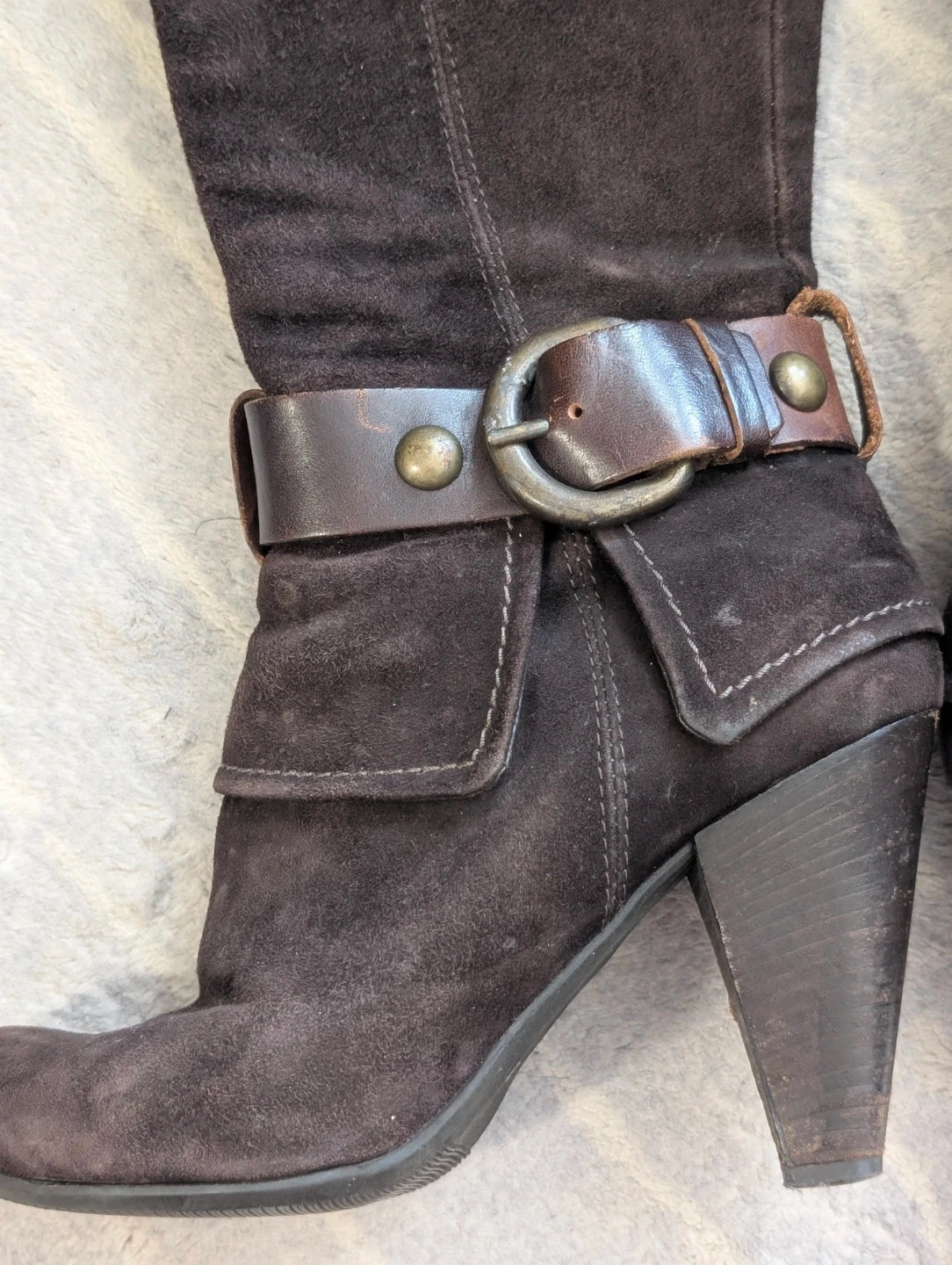 Brown Suede Knee-High Boots with Buckle Detail