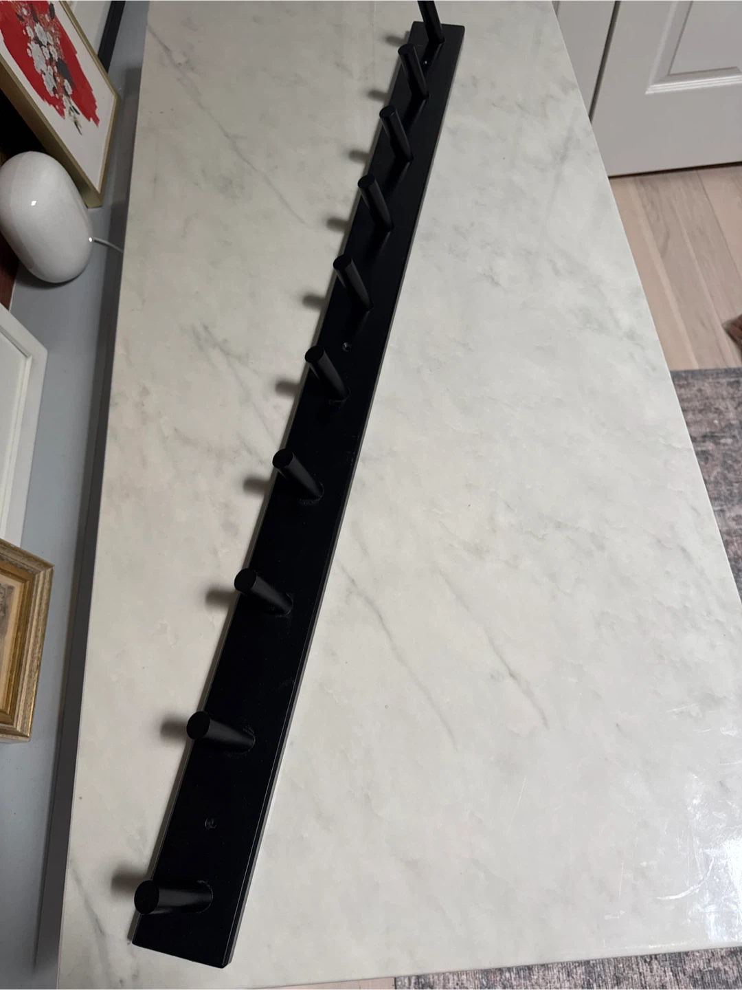 Buy & SellBlack Wall Mounted Coat Rack Shaker StyleBlack Wall Mounted Coat Rack Shaker Style$12This is a black wall-mounted coat rack with 10 hooks. It's made of wood. It's great for hanging coats, hats, or bags. 38” long. Excellent condition.ConditionLike newWHERE TO MEETIrving Square ParkView MapSELLERverifiedHilaryBushwick831 review0 chats·4 favorites·42 viewsSEND CHAT TO SELLERHi Hilary! I’m interested in your listing.Hi Hilary! I’m interested in your listing.Get the Karrot app to chatSign In to chat