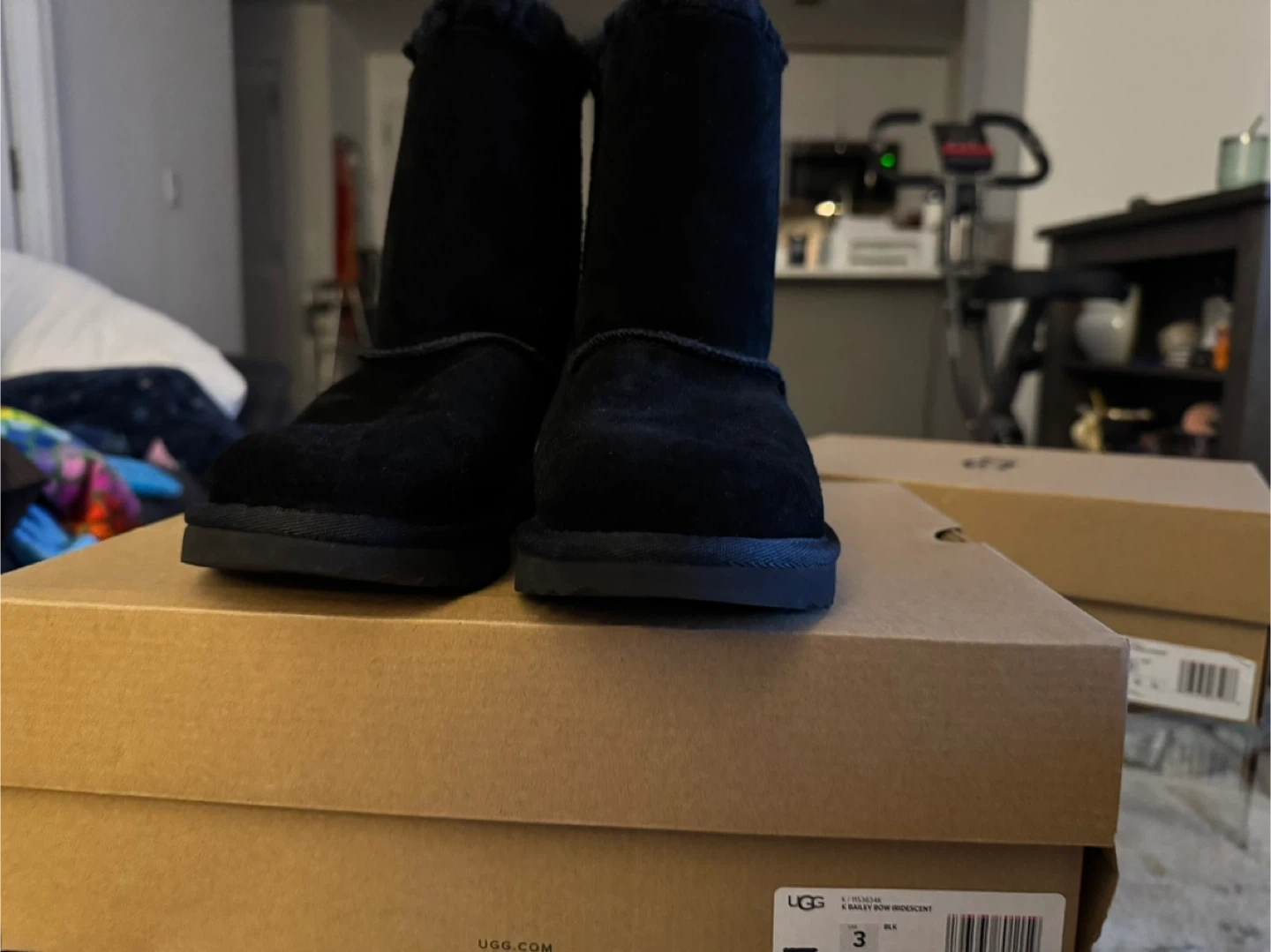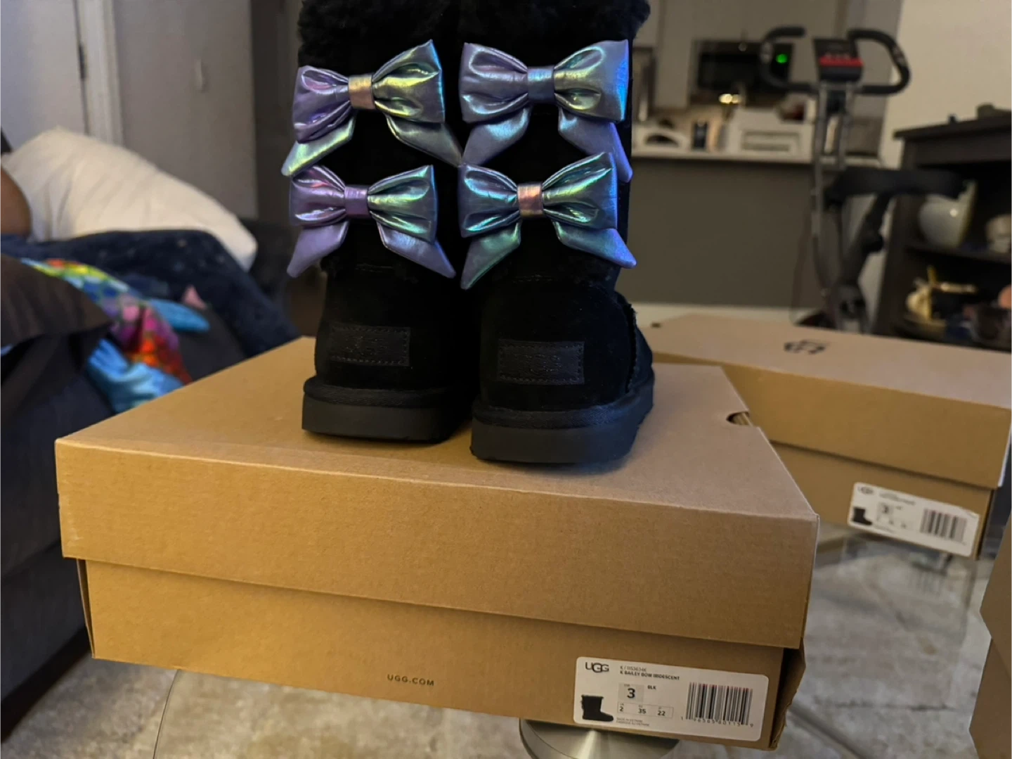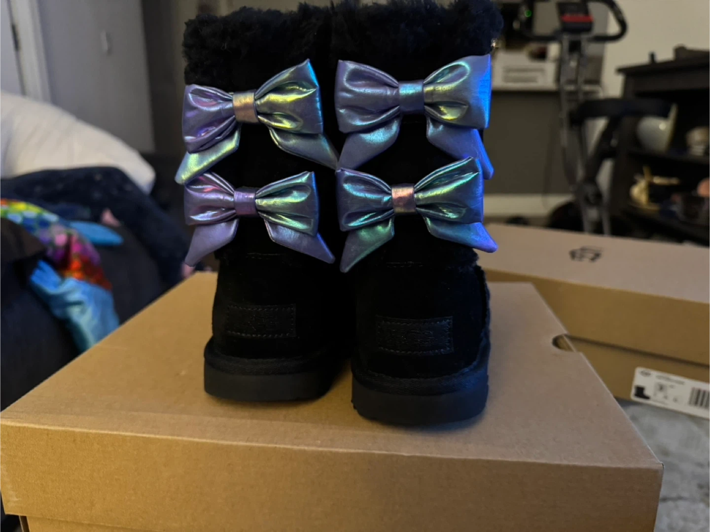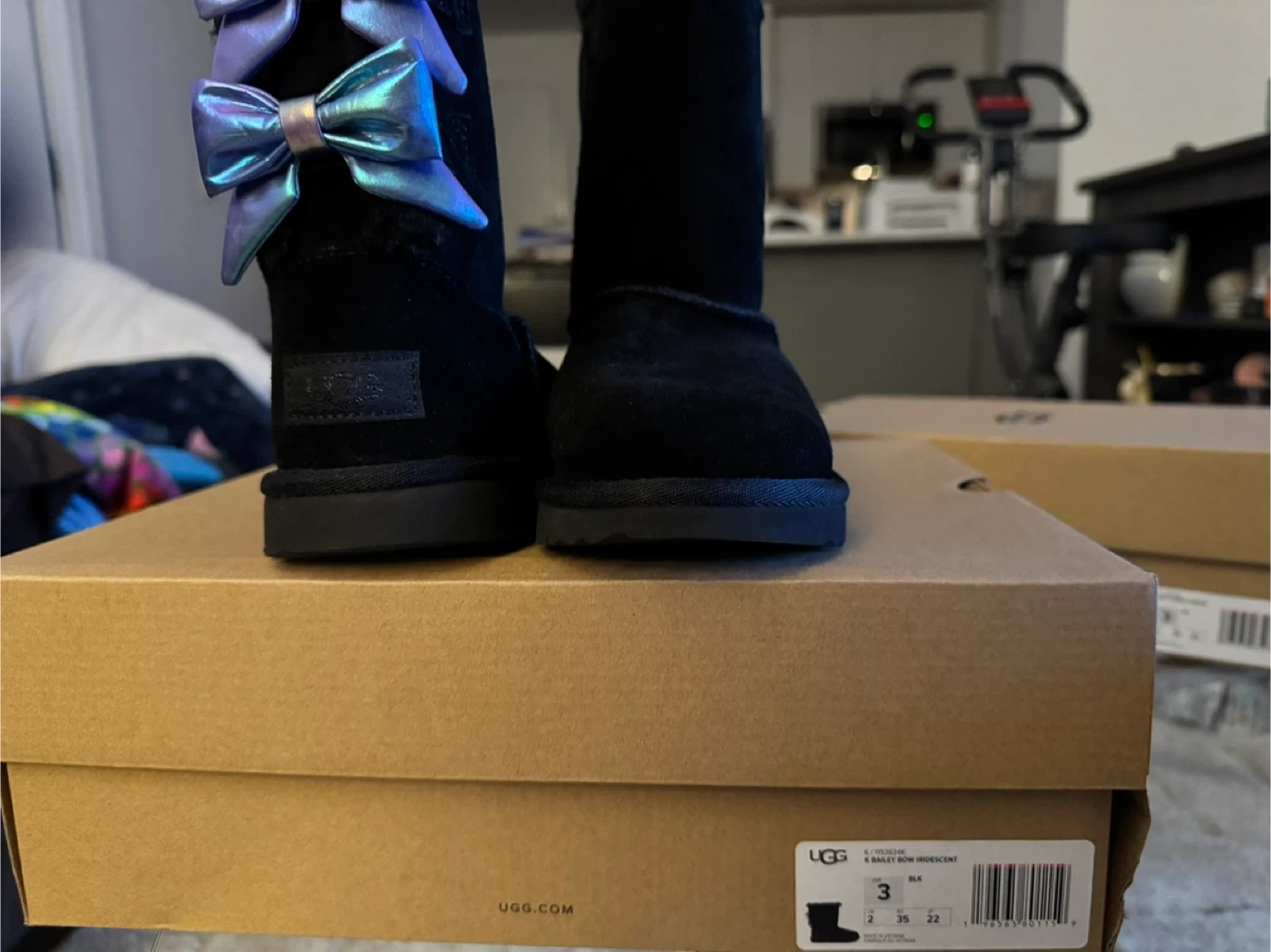 Buy & SellUGG K Bailey Bow Iridescent Boots Size 3UGG K Bailey Bow Iridescent Boots Size 3$55These UGG K Bailey Bow boots are black suede with iridescent bows. They include the original box. Size is 3.ConditionLike newAge9 years and olderWHERE TO MEETWhite Plains LibraryView MapSELLERverifiedTammieWhite Plains650 reviews0 chats·0 favorites·1 viewsSEND CHAT TO SELLERHi Tammie! I’m interested in your listing.Hi Tammie! I’m interested in your listing.Get the Karrot app to chatSign In to chat