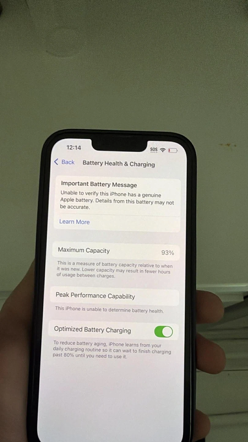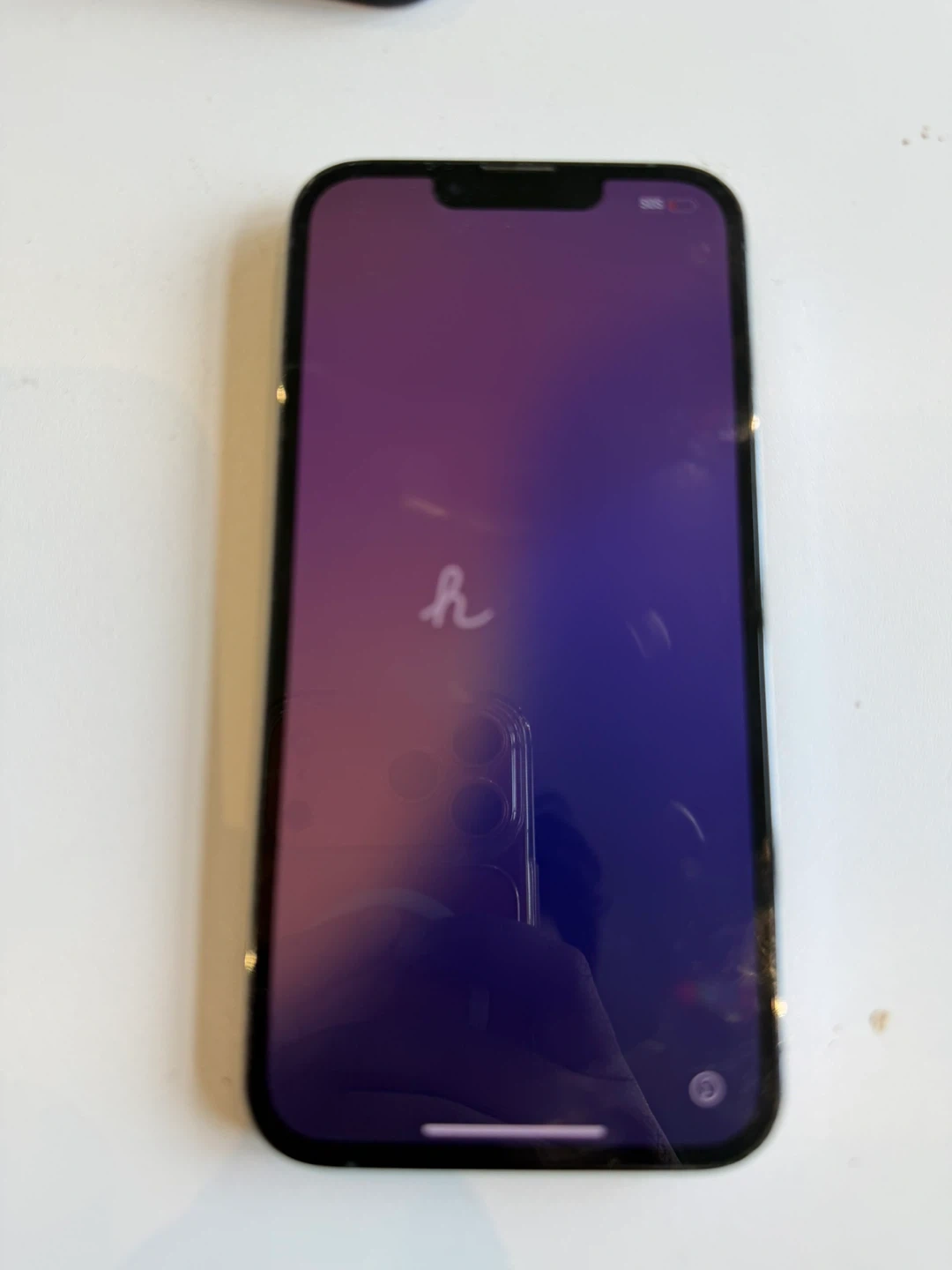 iPhone 13 Pro in Sierra Blue with cracked back glass. Battery health is at 93% maximum capacity. It's unable to verify the authenticity of the Apple battery. Some cosmetic wear is present.