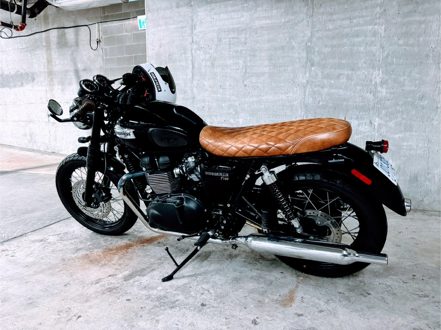 This is a black 2016 Triumph Bonneville T100 motorcycle. It features a diamond-stitched tan seat and chrome accents. Well-maintained, with only 5,600 km. Runs and rides excellent with no issues. Clean title, smooth engine, and regularly cared for. Ready to ride — nothing needed.. This bike is great for city cruising or weekend rides!