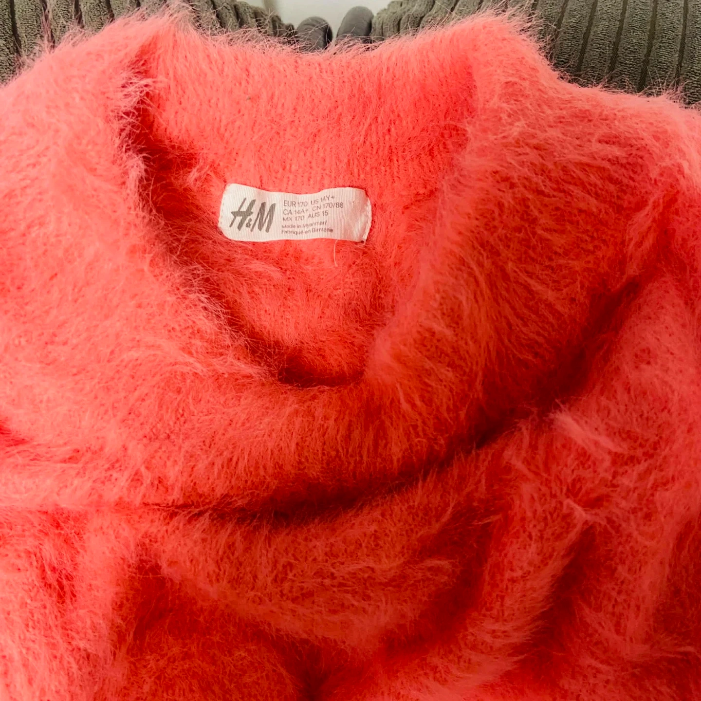 This H&M sweater is a fuzzy mock neck style in a vibrant coral colour. It's made from a soft blend, perfect for adding some warmth and colour to your outfit. Size is extra small.