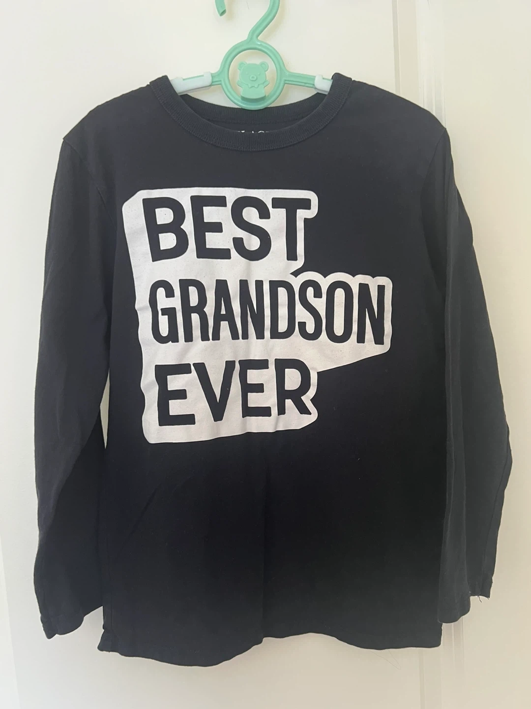 Black long sleeve shirt with "Best Grandson Ever" printed on the front