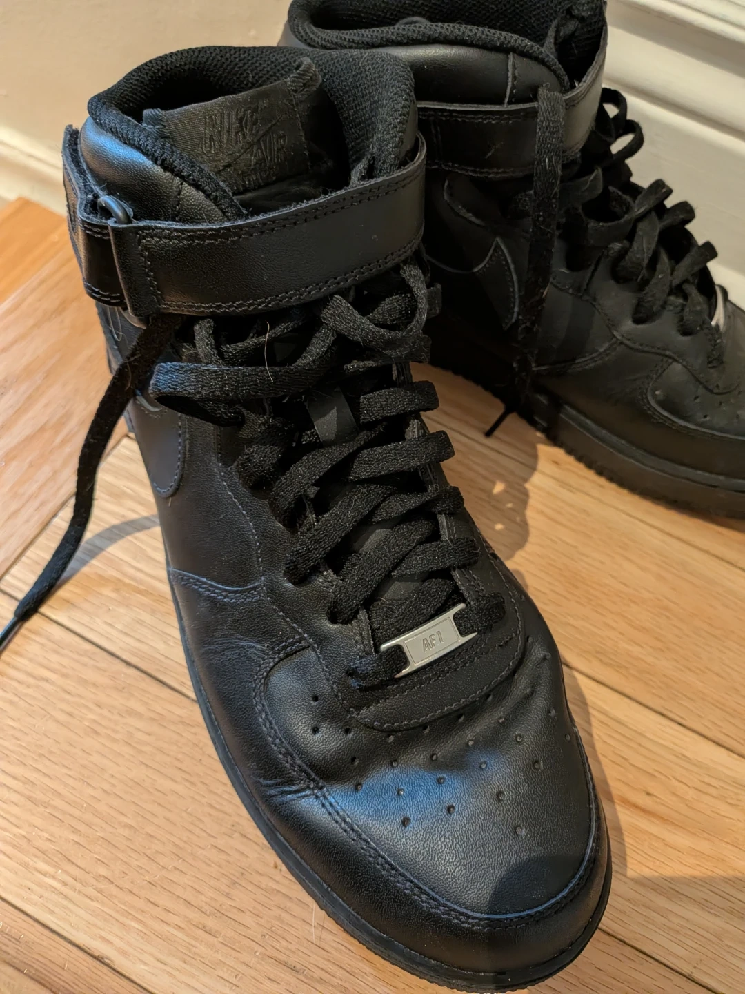 Nike Air Force 1 Mid Black Leather Sneakers