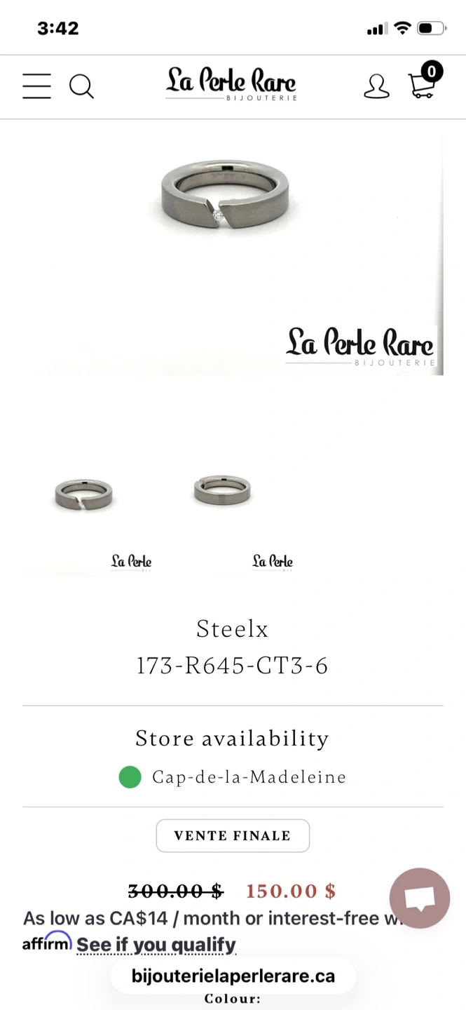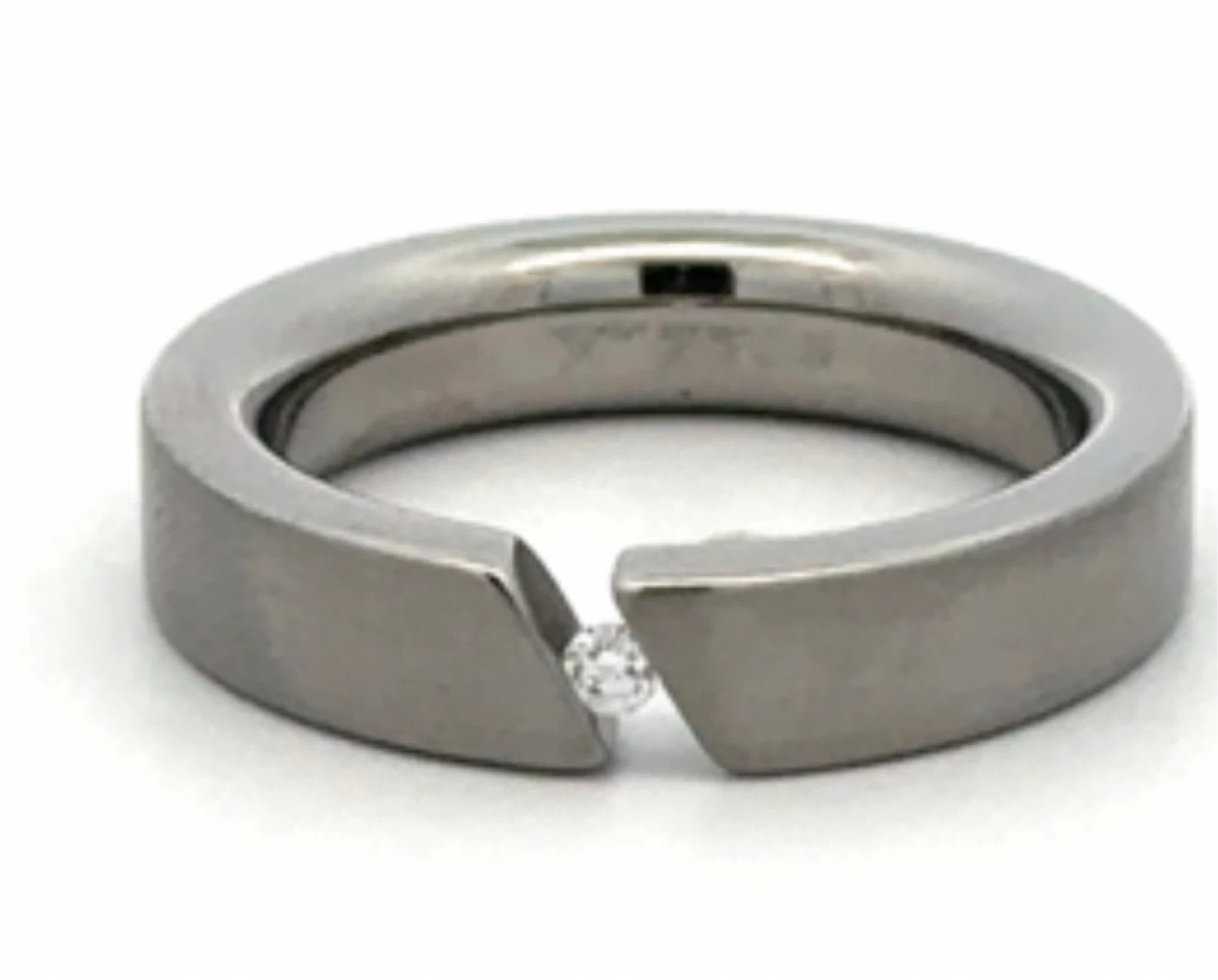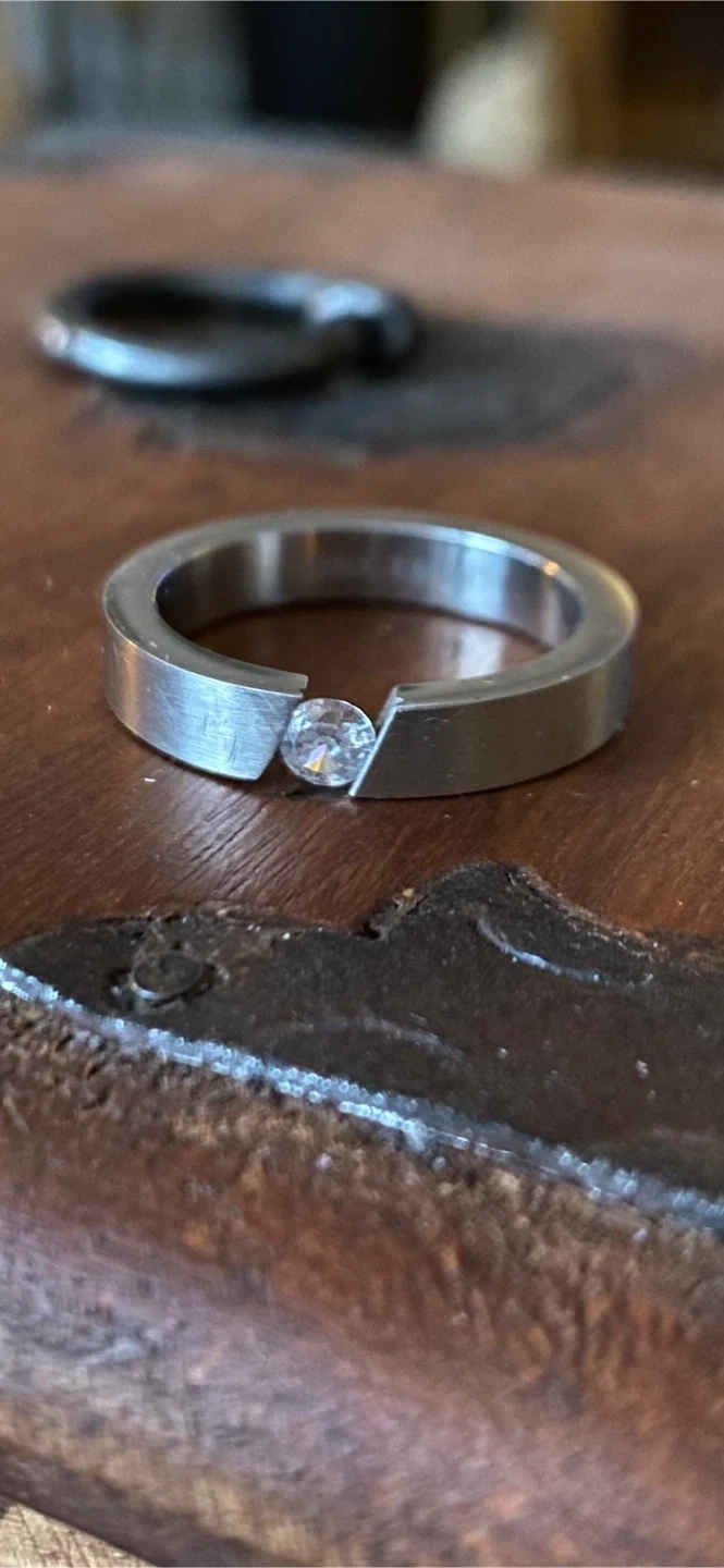 This Steelx ring features a single cubic zirconia set in a modern design. It's crafted from stainless steel. This ring would be suitable for everyday wear or as a special occasion accessory. This ring has a larger stone than the one shown in the third and fourth photos. Regularly retails for 300$