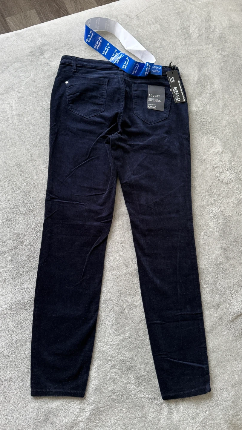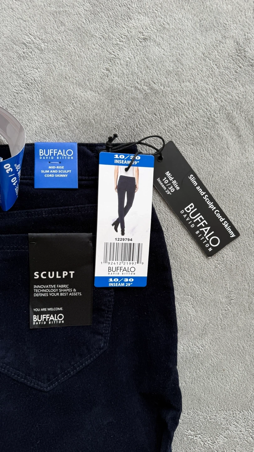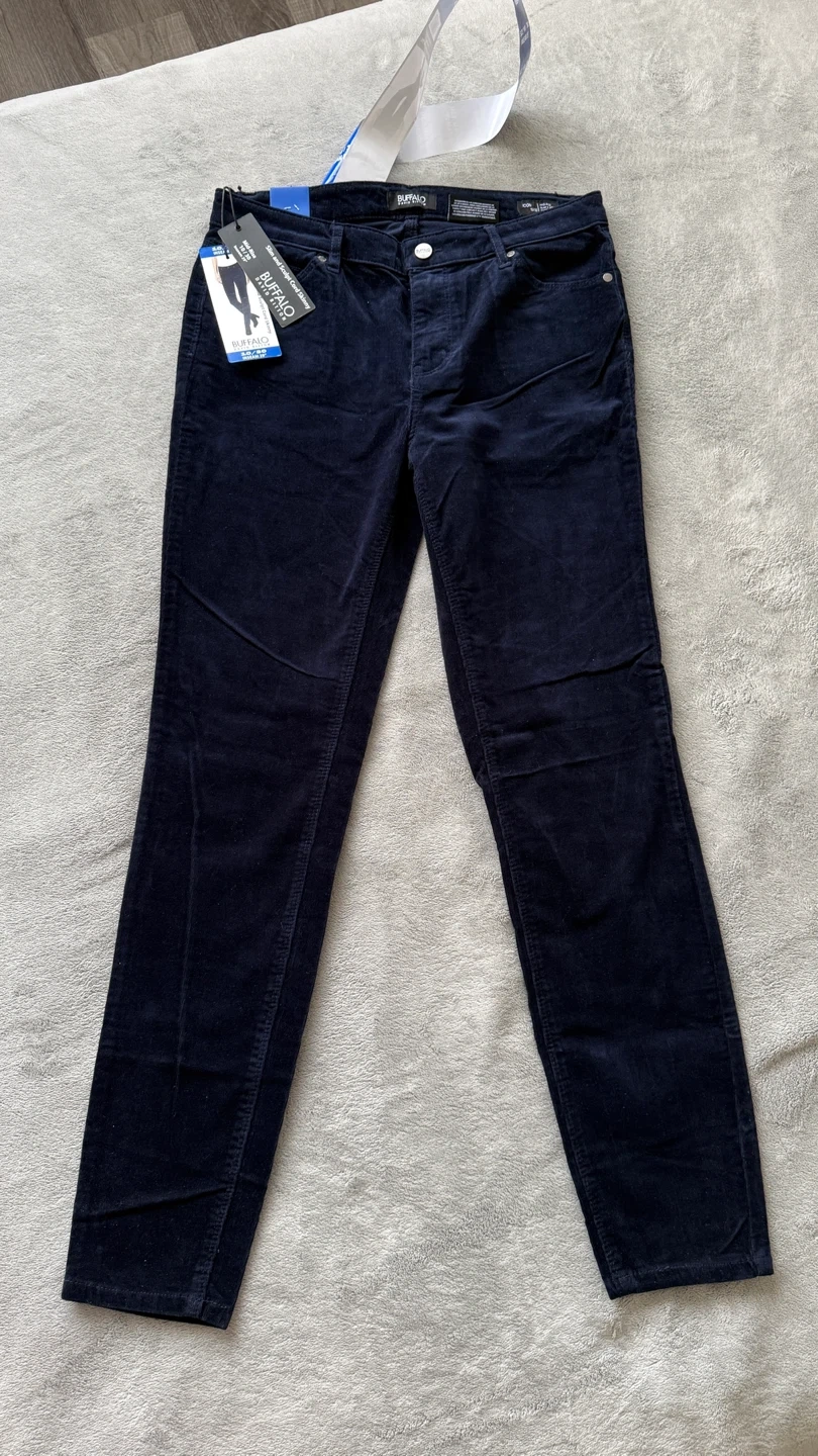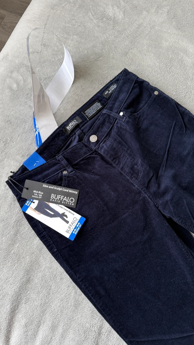 Buffalo David Bitton women's slim and sculpt cord skinny pants in a dark navy colour. Mid-rise with a 29" inseam. Corduroy material.