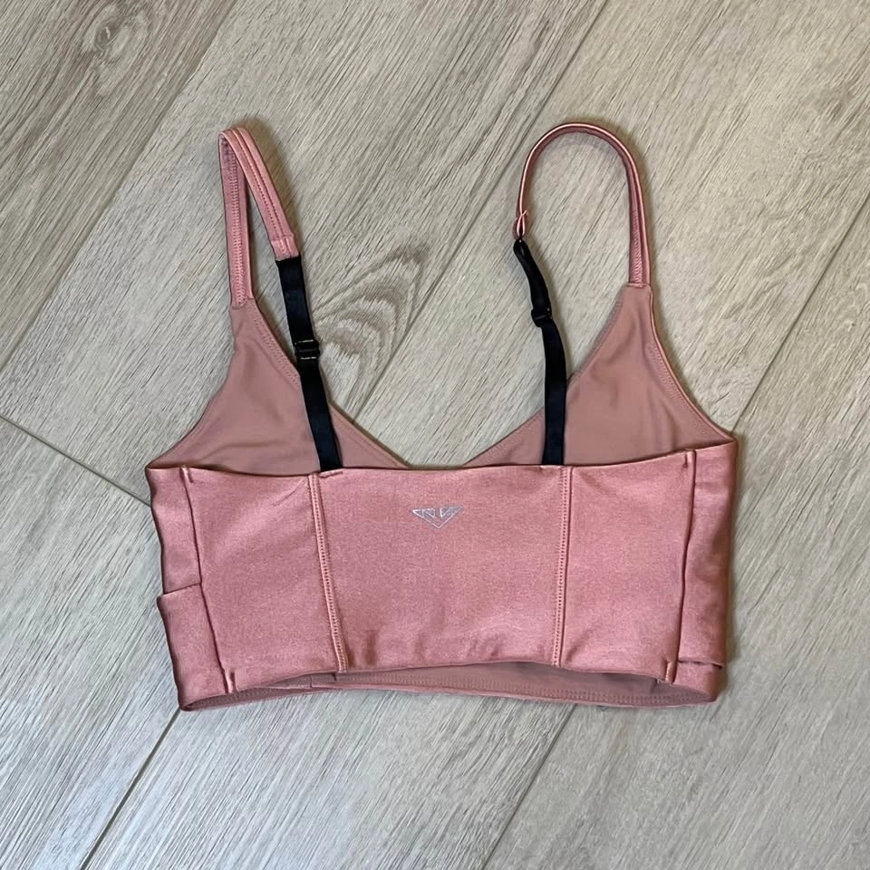 Shiny pink INDUSTRY wrap bralette with adjustable straps. Cross-over in the front. Inside back logo is rubbing off. Otherwise excellent condition. Size S.
