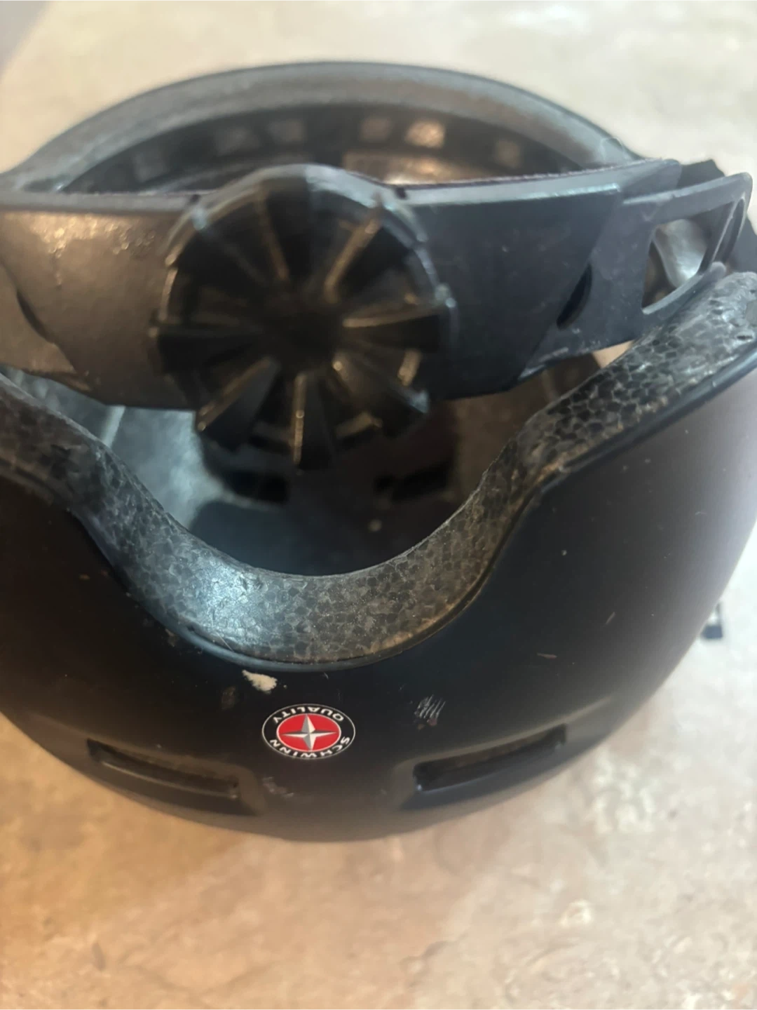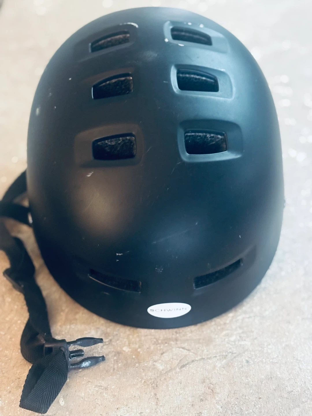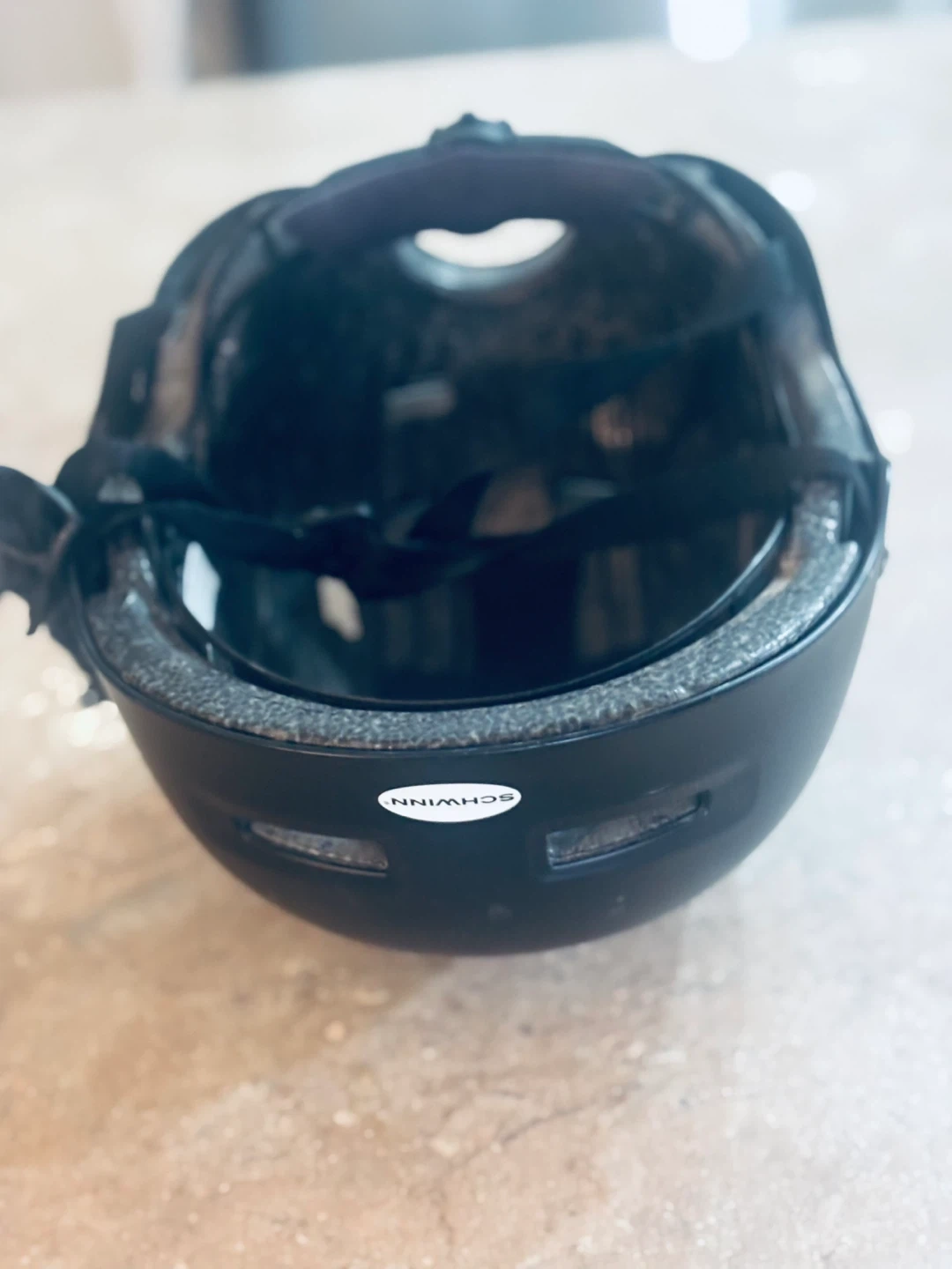 This black Schwinn bike helmet is designed for safety and comfort. It's a size M-L, fitting heads from 53-57 cm. Adjust the fit with the rear dial for a secure feel. Pick up in Terwillegar.