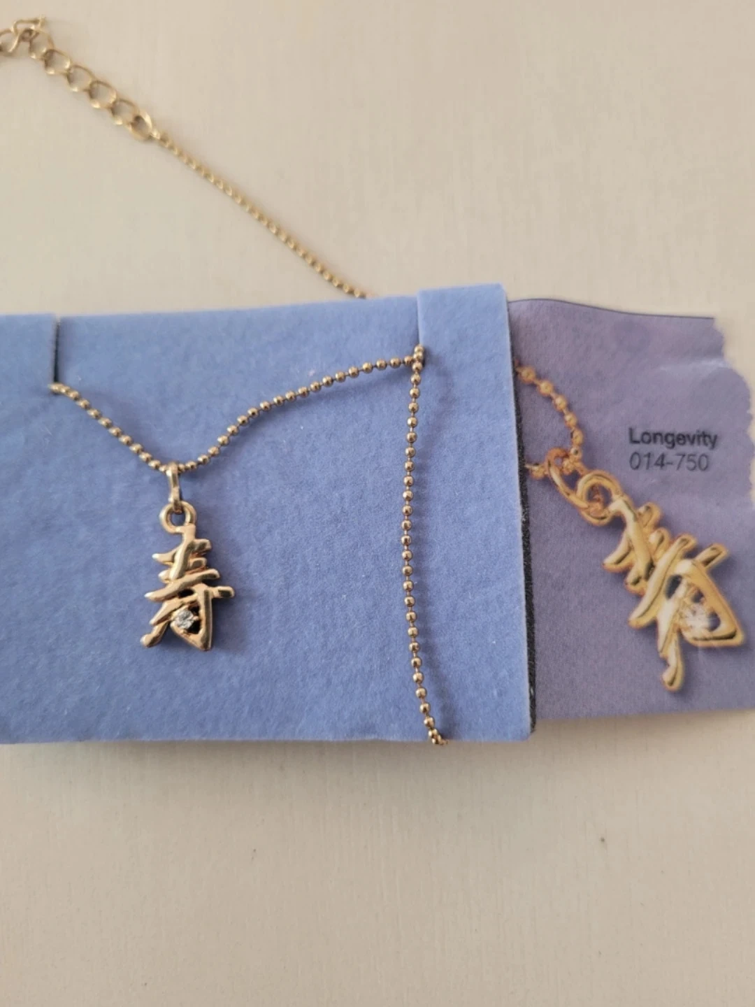Buy & SellAvon Longevity NecklaceAvon Longevity Necklace$15A gold-toned necklace with the character for longevity and a small clear stone in it. Never been worn and comes in the original Avon boxConditionLike newWHERE TO MEETVintage Cat Cafe TorontoView MapSELLERverifiedMichaelaCorso Italia-Davenport57945 reviews0 chats·0 favorites·1 viewsSEND CHAT TO SELLERHi Michaela! I’m interested in your listing.Hi Michaela! I’m interested in your listing.Get the Karrot app to chatSign In to chat