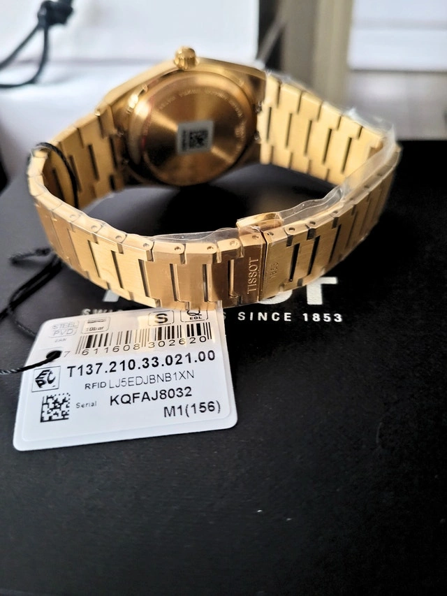 Brand new in the box with tags and booklet! Model T137.210.33.021.00, T-Classic Collection. Features a 35mm stainless steel case with yellow gold PVD coating, scratch-resistant sapphire crystal, and a Swiss Quartz movement. Date calendar. Water resistant to 100M. Pick up at Sheppard & Don Mills. Cash and cashless payments accepted.