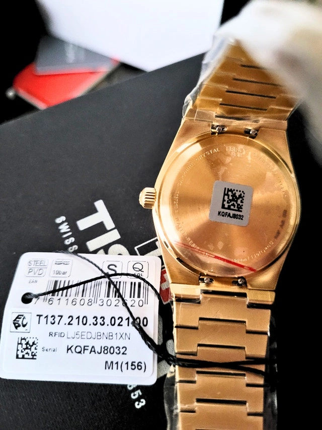 Brand new in the box with tags and booklet! Model T137.210.33.021.00, T-Classic Collection. Features a 35mm stainless steel case with yellow gold PVD coating, scratch-resistant sapphire crystal, and a Swiss Quartz movement. Date calendar. Water resistant to 100M. Pick up at Sheppard & Don Mills. Cash and cashless payments accepted.