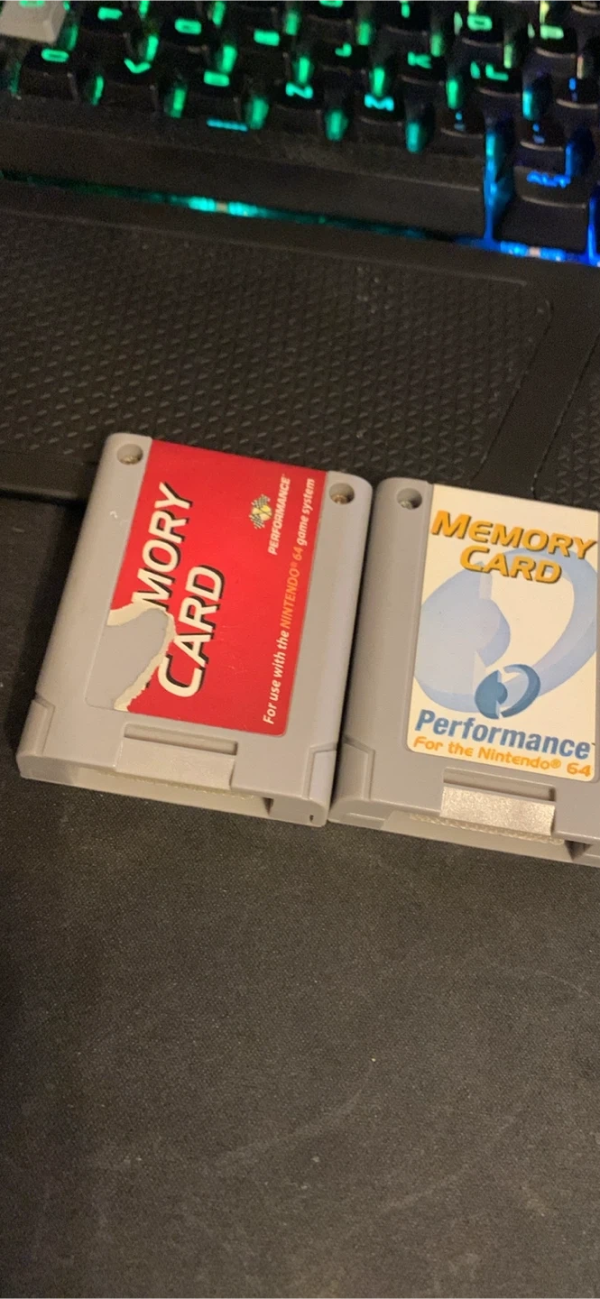 Two Performance memory cards for the Nintendo 64 game system. Extend your game saving capabilities for all your N64 adventures!