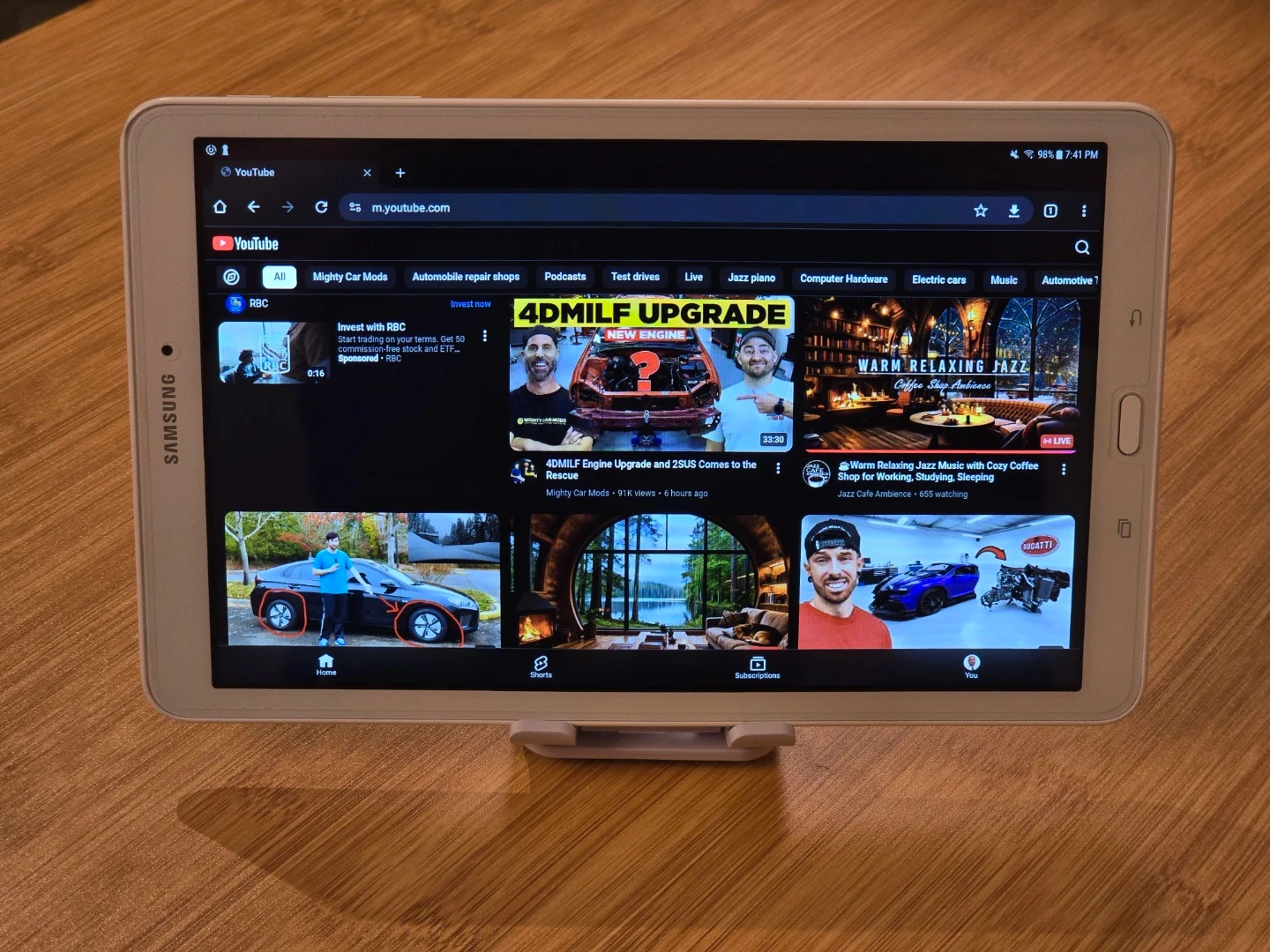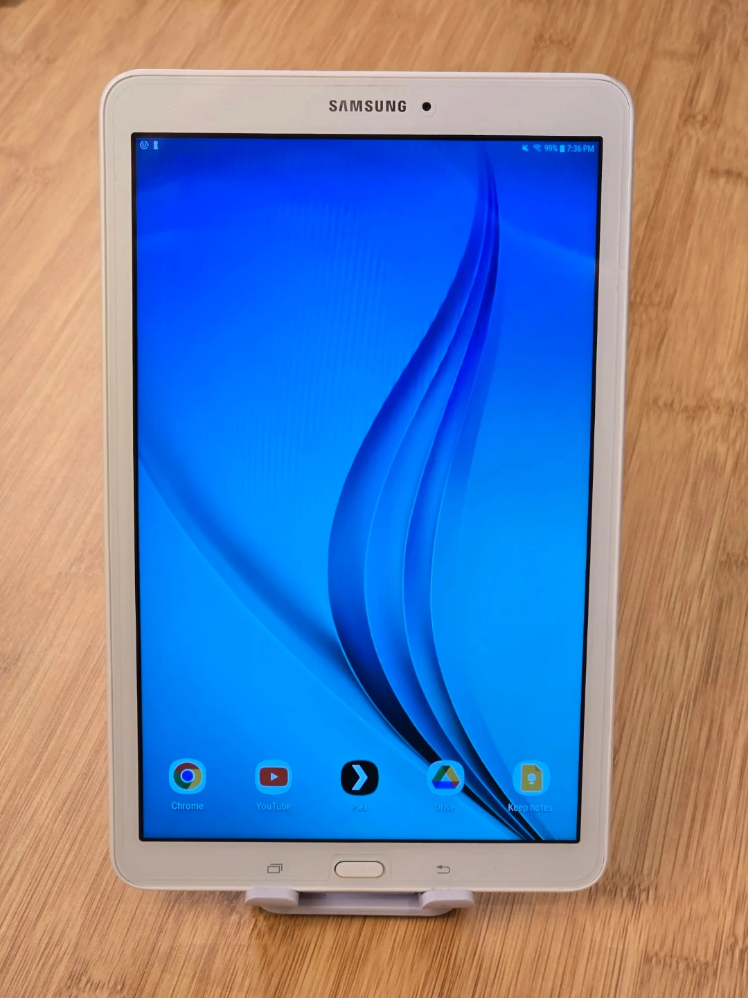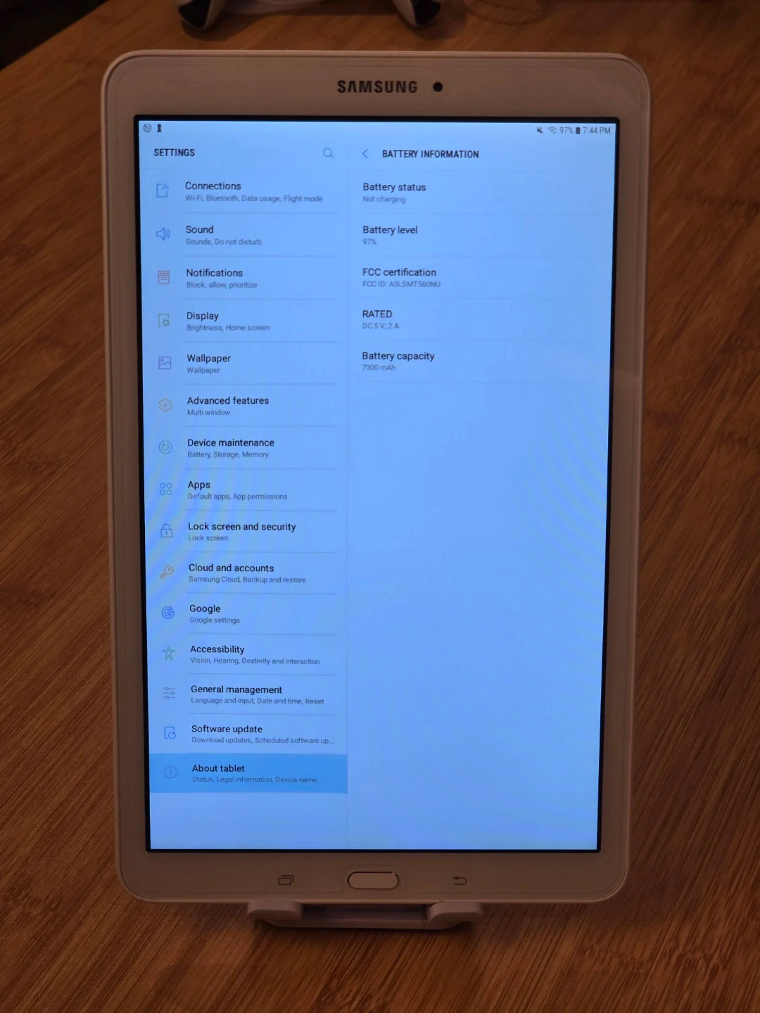 This is a white Samsung Galaxy Tab E Lite tablet. It has 16GB of storage and comes with its charger and USB cable. The battery capacity is 7300 mAh. Includes screen protector. Perfect condition.