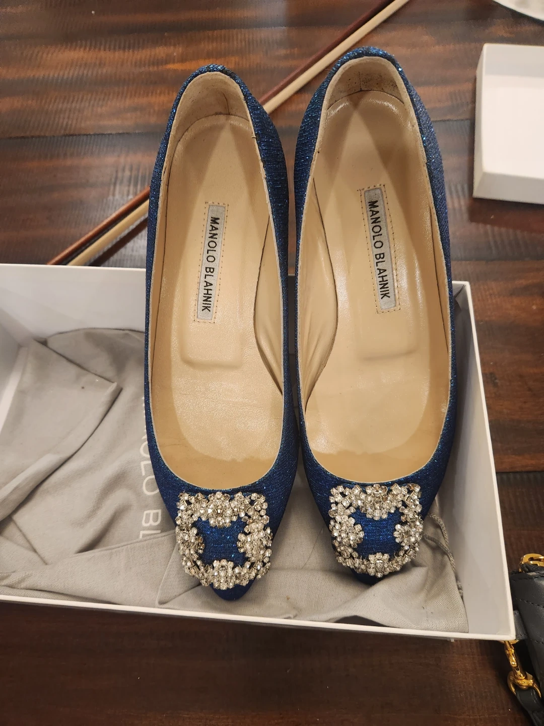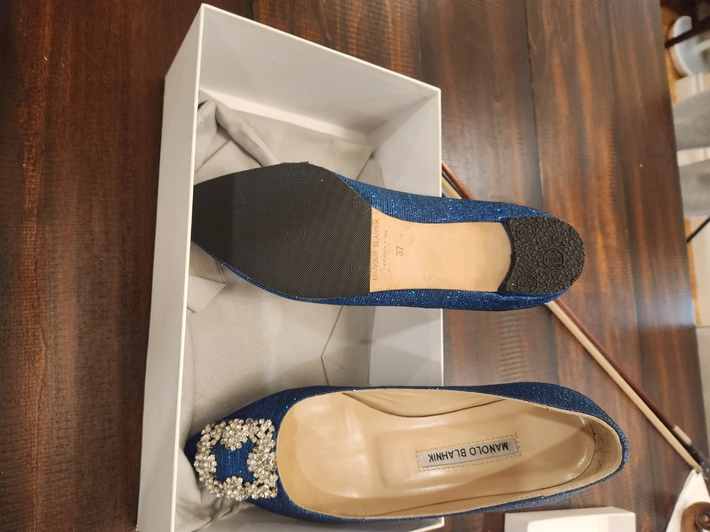 Manolo Blahnik Blue Sparkle Embellished Flats Size 37