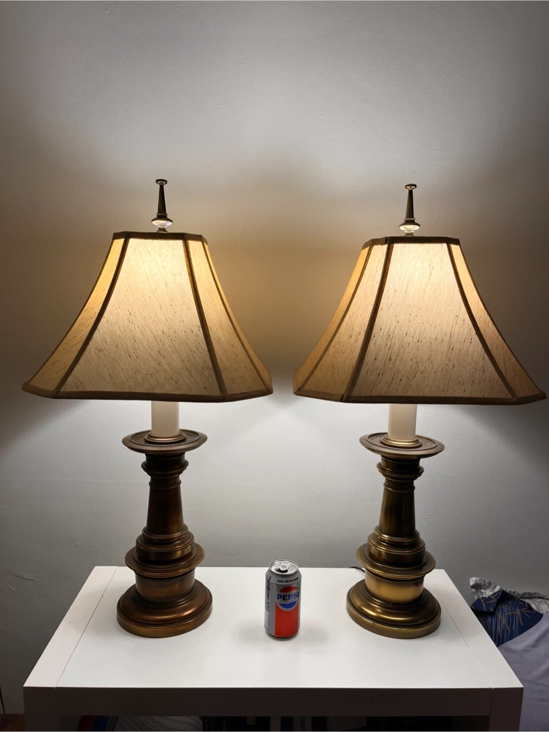 🚚📦 Pair of side lamps. Base is brass and heavy.