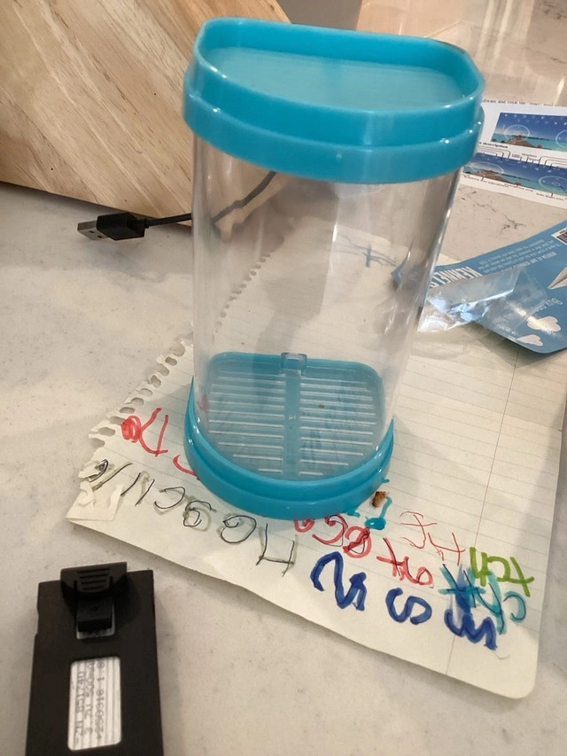 I am selling a used bug habitat with a blue lid and base, perfect for observing insects and small creatures up close. It’s in good condition and ready for a new home. Remember, if the ad's still up, it is still available you can also use it as a fish tank