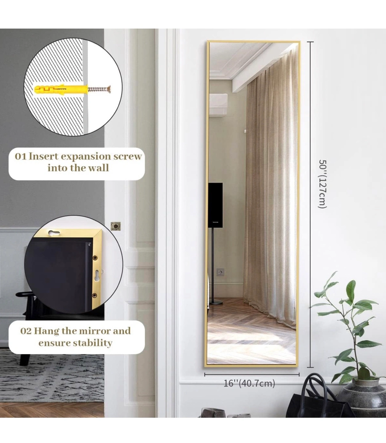 Gold Over The Door Mirror, 16”x50”
