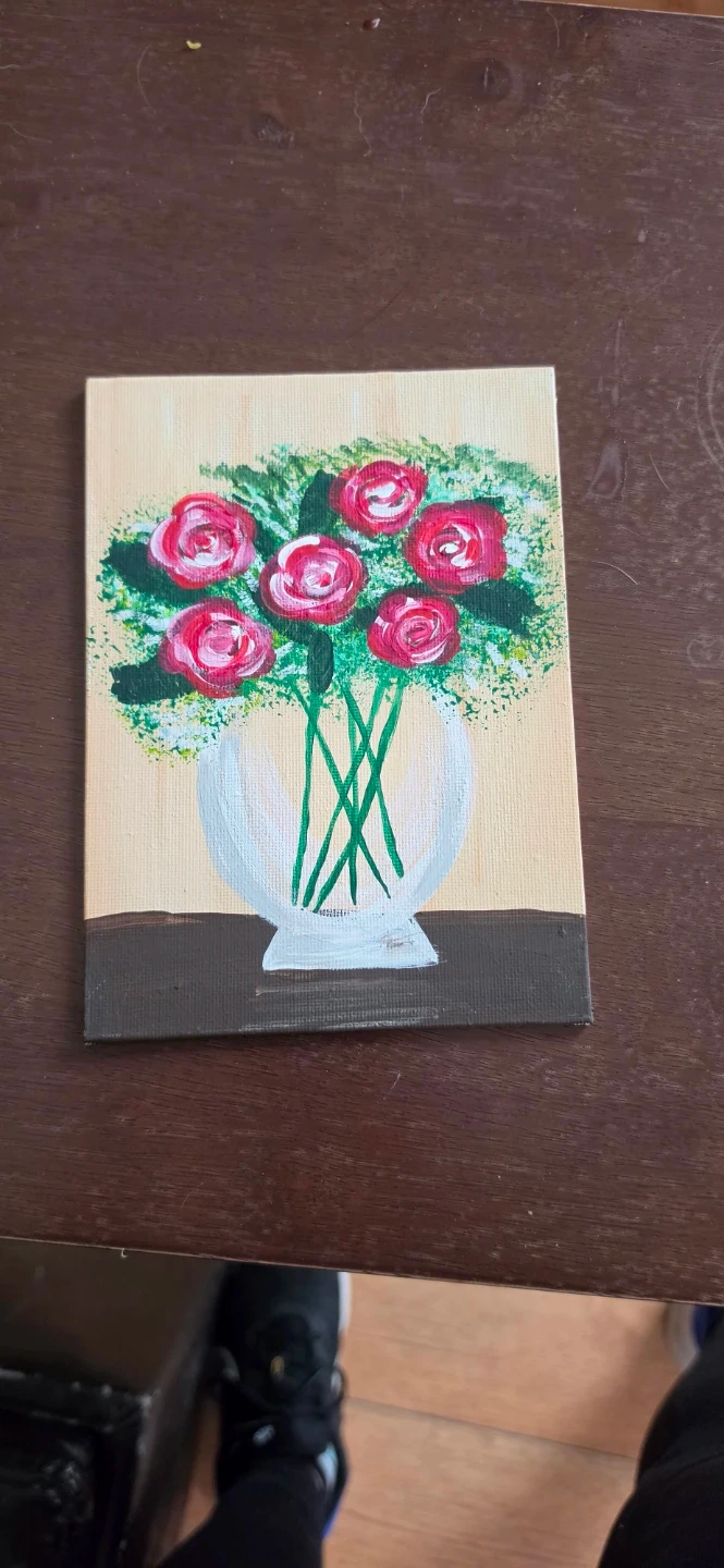 Acrylic Painting of Roses in a Vase