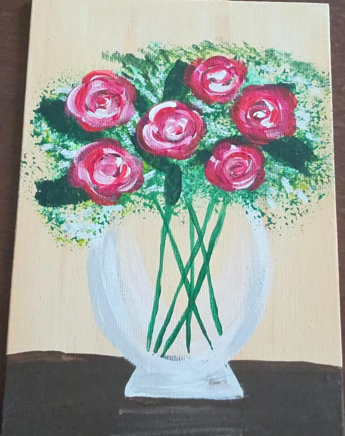Acrylic Painting of Roses in a Vase