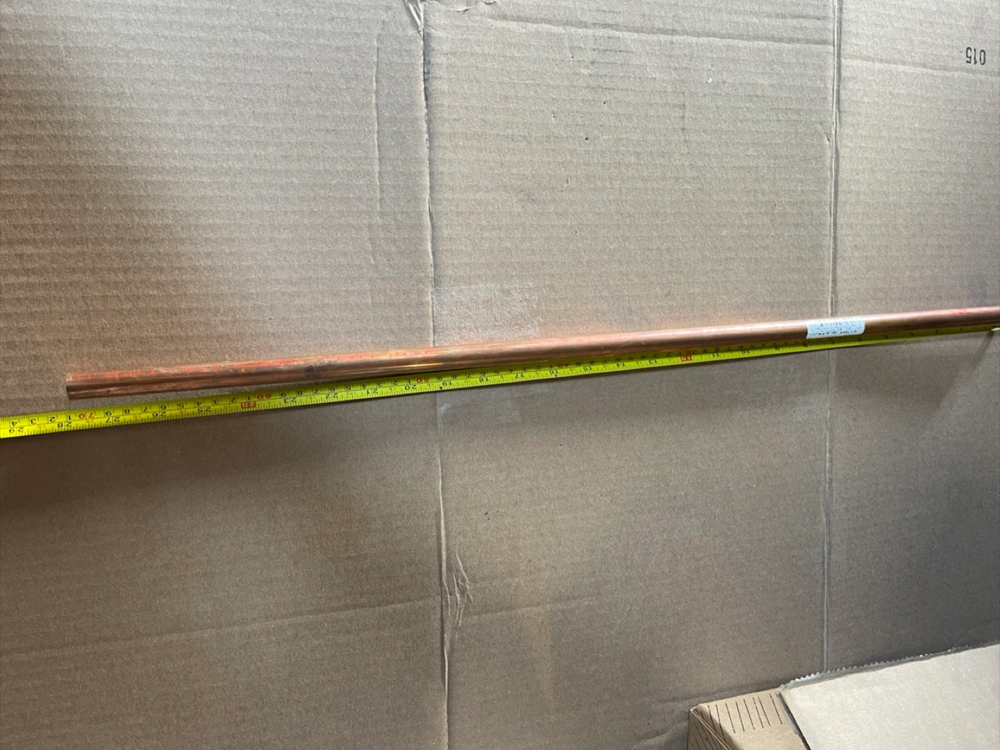 Unused copper pipe, approximately 28 inches long. Solid copper. Perfect for plumbing or DIY projects. Shows minor markings.