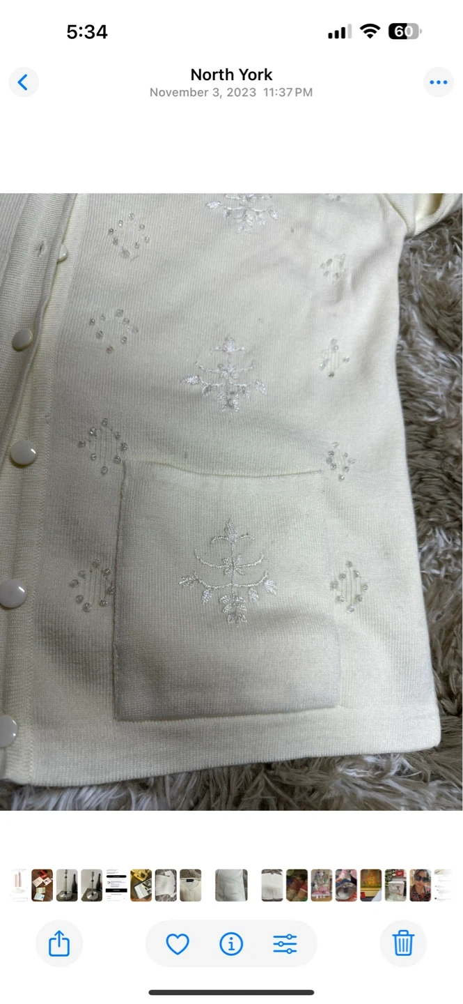 Buy & SellCream Embroidered Button-Up CardiganCream Embroidered Button-Up CardiganFreeCream knit cardigan with embroidered snowflake details. It features a button-up front and two front pockets. Nice for cooler days!ConditionLike newWHERE TO MEETCheck LocationView MapSELLERverifiedMimiMaryvale1000+206 reviews1 chats·0 favorites·20 viewsSEND CHAT TO SELLERHi Mimi! I’m interested in your listing.Hi Mimi! I’m interested in your listing.Get the Karrot app to chatSign In to chat
