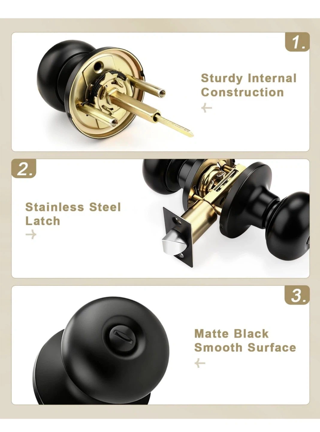 6 Pack Matte Black Privacy Door Knobs with Lock
