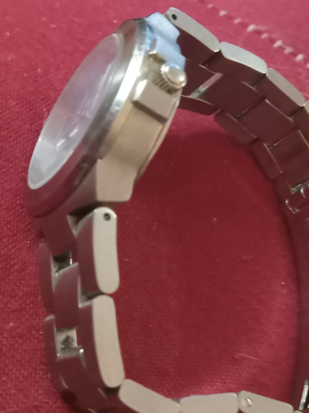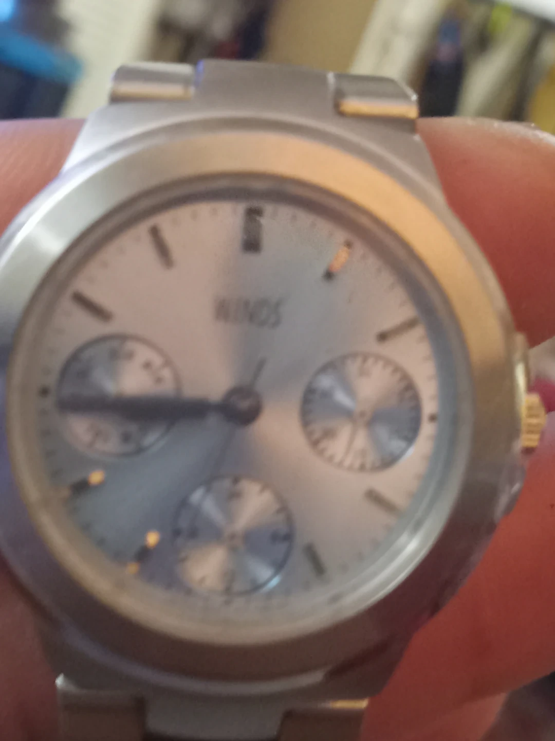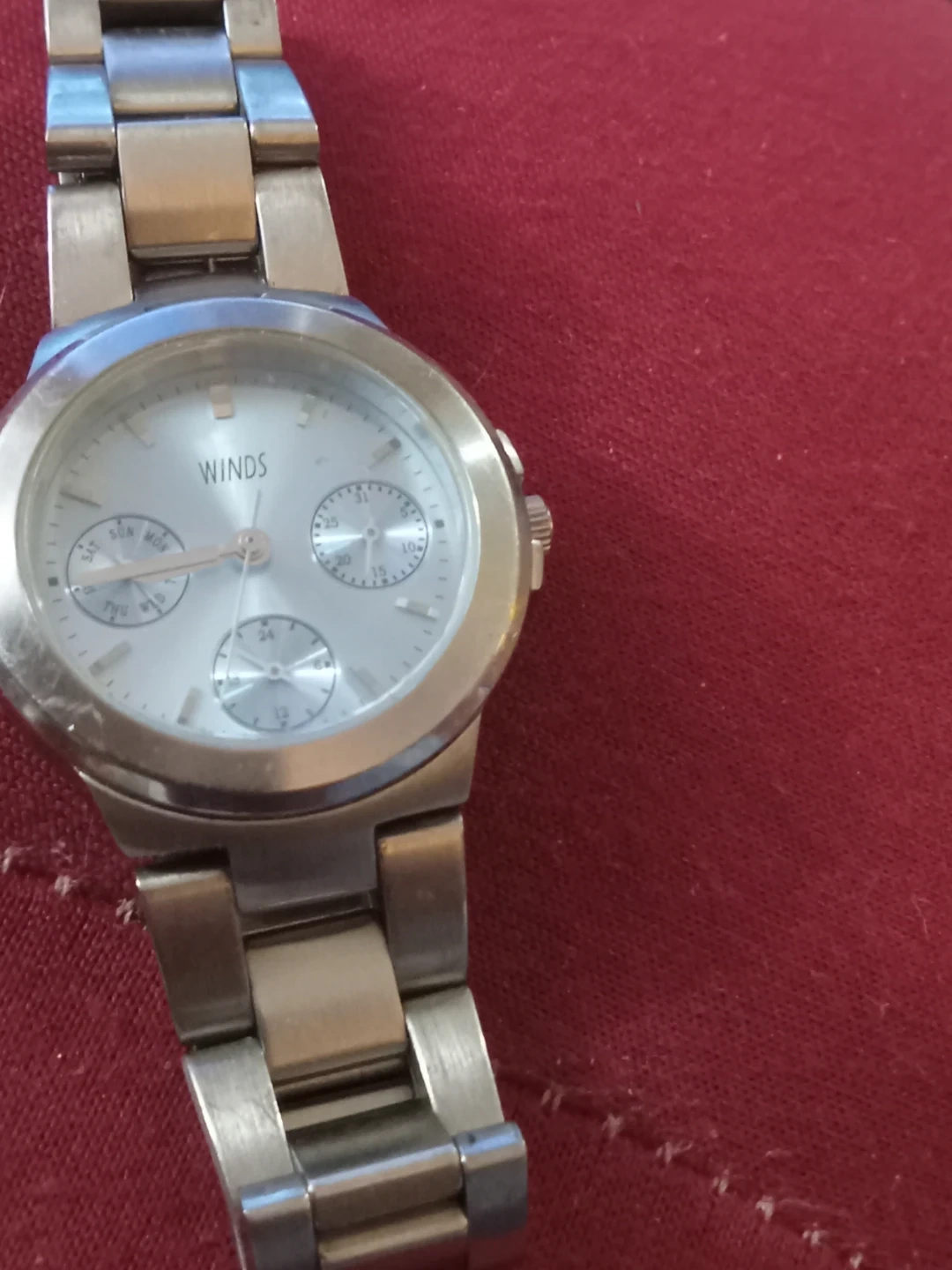 Selling a Winds silver watch. It has a stainless steel band and a silver face with three subdials. It's in good condition.