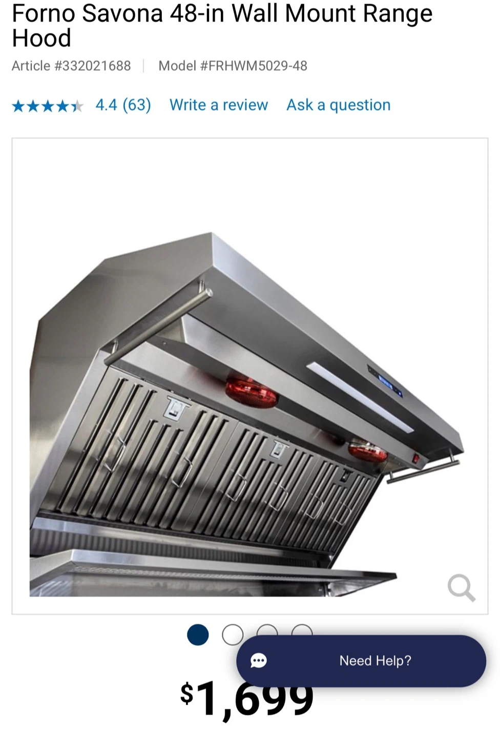 Forno Savona 48-inch Wall Mount Range Hood