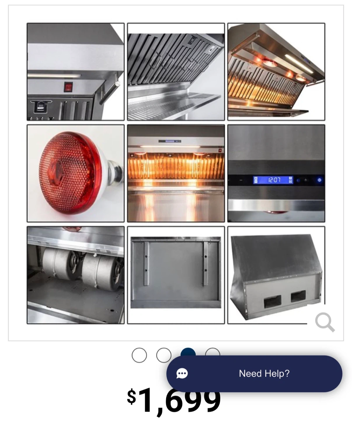 This 48-inch wall mount range hood is made of durable stainless steel. It features a hybrid mesh filtration system and adjustable capture speed. Includes upper level warming rack, infra-red bulb, and dual utensil hangers. It's designed for powerful ventilation of 1200 CFM. Dishwasher-safe filters make cleaning easy!