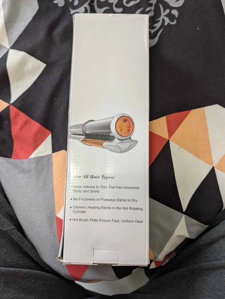 Get salon-quality results at home with this Professional Rotating Iron. This unique tool features a rotating heated barrel that polishes hair as it styles, giving you incredible shine and volume without crushing or flattening the hair like a traditional flat iron. Use it to straighten, create loose curls, or add a bouncy blowout flip to your ends. The rotating barrel and brush bristles work together to smooth the hair cuticle and reduce frizz. Wide barrel design allows you to style larger sections of hair at once, saving you time. Includes multiple heat settings to suit different hair types (Fine, Medium, Thick). Condition: New in Box. Perfect for someone looking for a "one-and-done" styling tool that doesn't damage hair like a standard straightener. Pick Up: Hamilton Ontario.