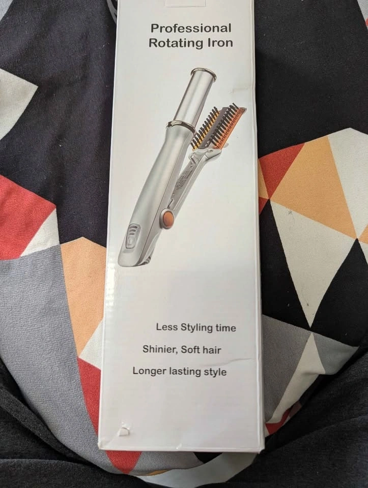 Get salon-quality results at home with this Professional Rotating Iron. This unique tool features a rotating heated barrel that polishes hair as it styles, giving you incredible shine and volume without crushing or flattening the hair like a traditional flat iron. Use it to straighten, create loose curls, or add a bouncy blowout flip to your ends. The rotating barrel and brush bristles work together to smooth the hair cuticle and reduce frizz. Wide barrel design allows you to style larger sections of hair at once, saving you time. Includes multiple heat settings to suit different hair types (Fine, Medium, Thick). Condition: New in Box. Perfect for someone looking for a "one-and-done" styling tool that doesn't damage hair like a standard straightener. Pick Up: Hamilton Ontario.