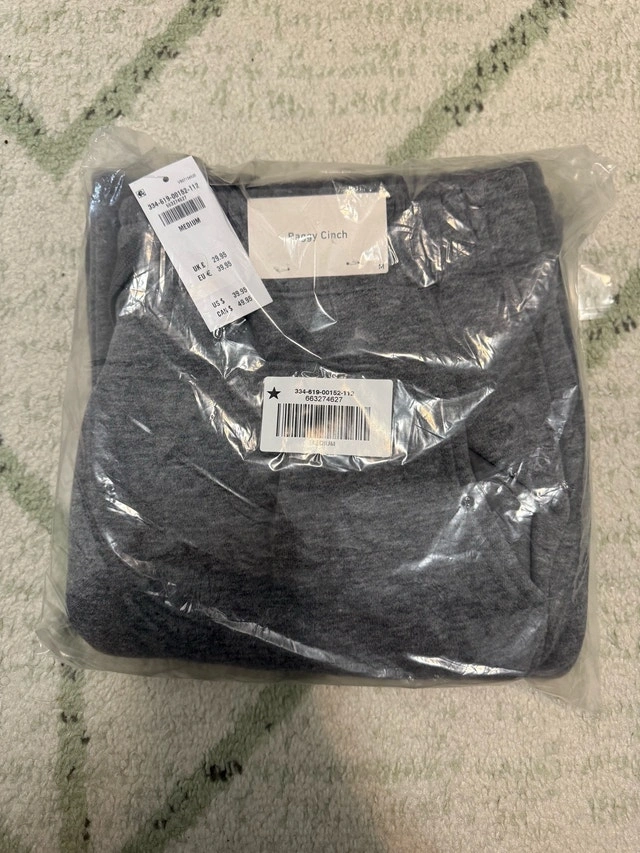 These Abercrombie & Fitch baggy cinch joggers are new with tags, offering both style and comfort. They feature a drawstring waistband and cinched ankles, perfect for a relaxed fit. Additional features include soft fleece fabric and side pockets. The ad is up, so the item is available!