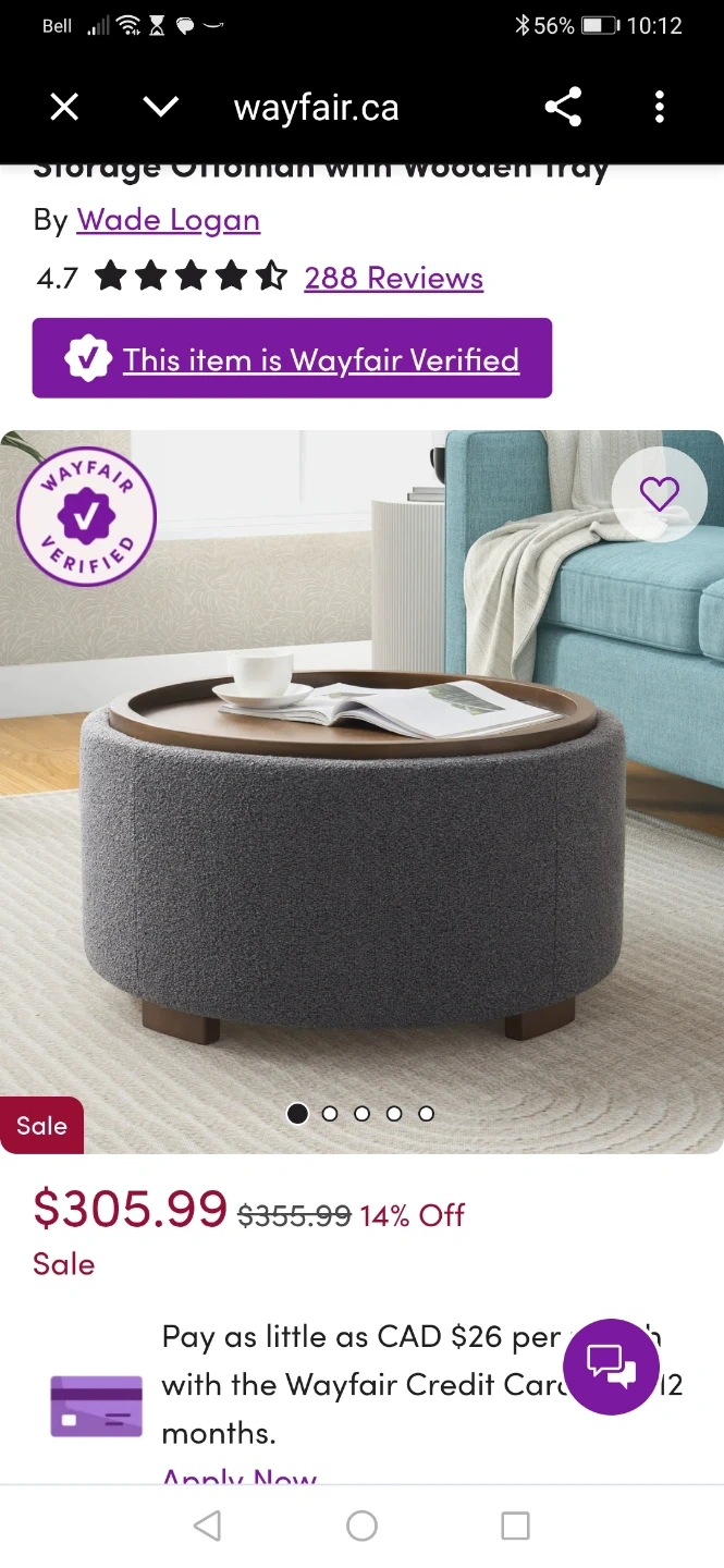 Storage Ottoman with Wooden Tray