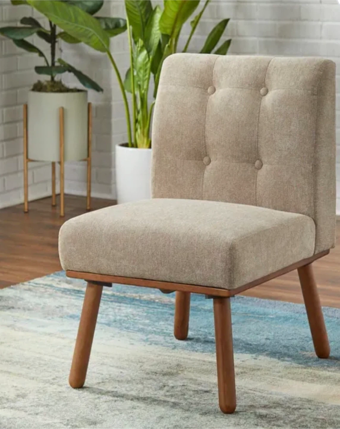 Provide guests cozy seating in any quiet space in your kitchen, dining room or living room with this armless accent chair. Sturdy MDF frame with solid rubberwood legs ensure lasting, stable reliability, while a visually impactful, tufted upholstered back and a padded seat make for the ultimate supportive seating. loveseat, corner chair, and table are sold separately, allowing you to customize your living space.