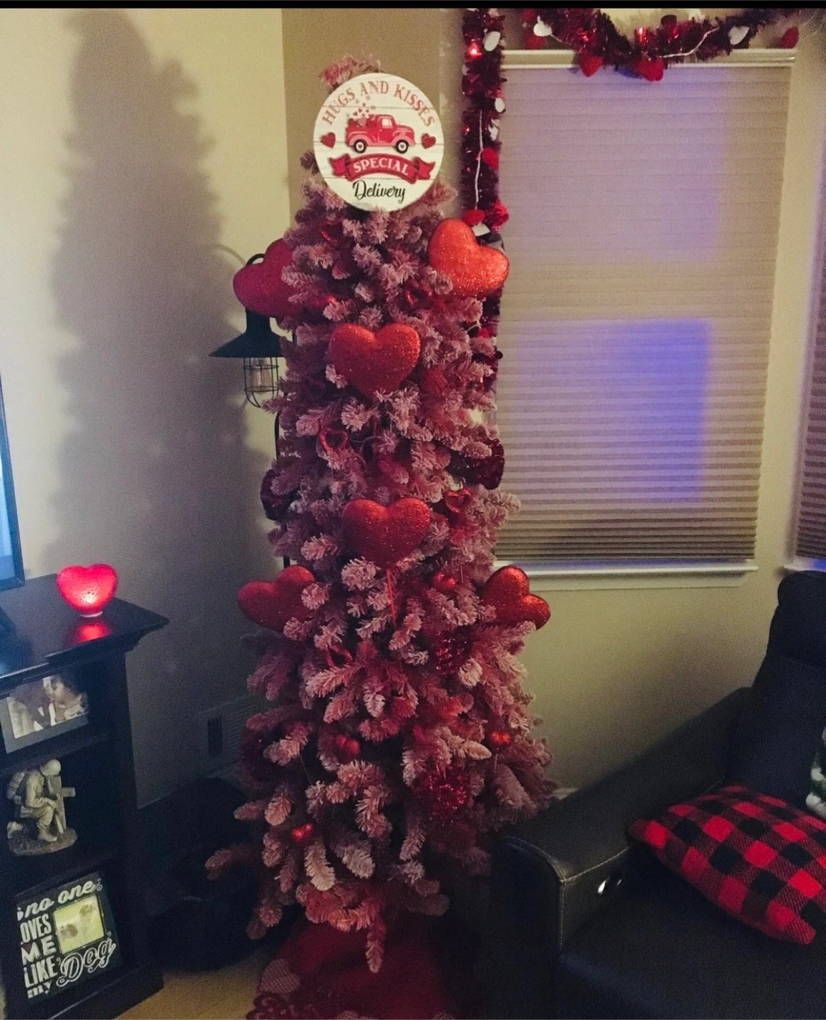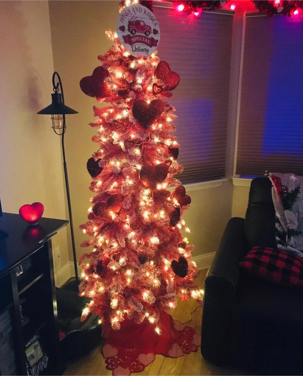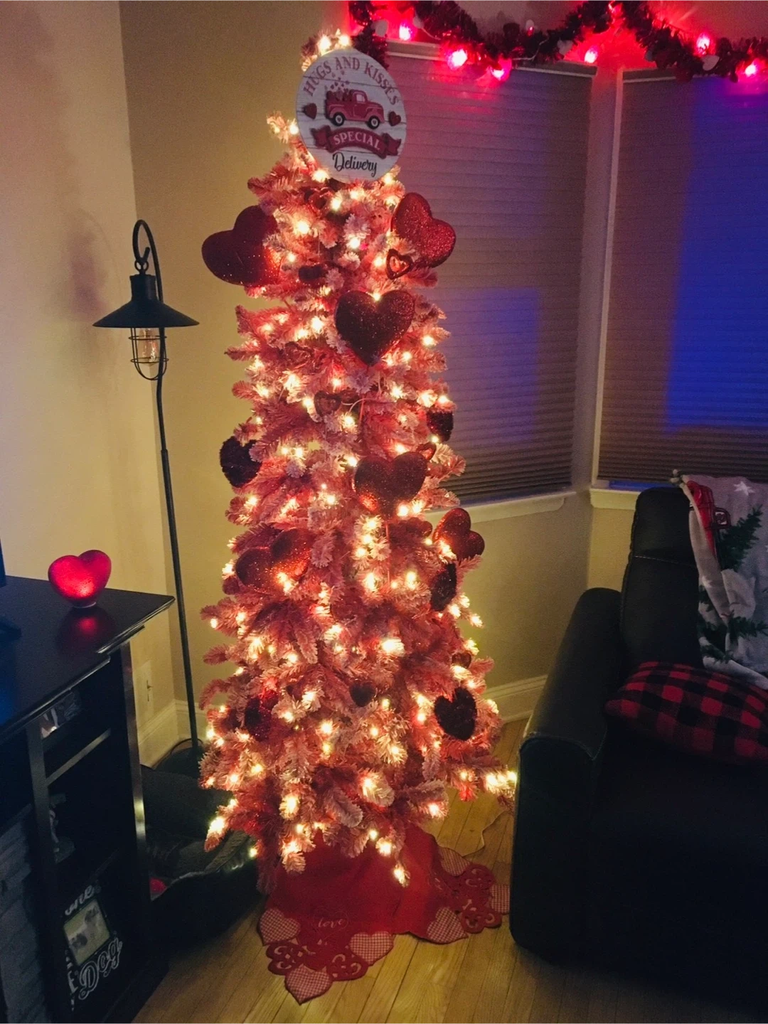 Selling a Valentine's Day themed Christmas tree! It has white lights, perfect for adding a festive touch to your home.