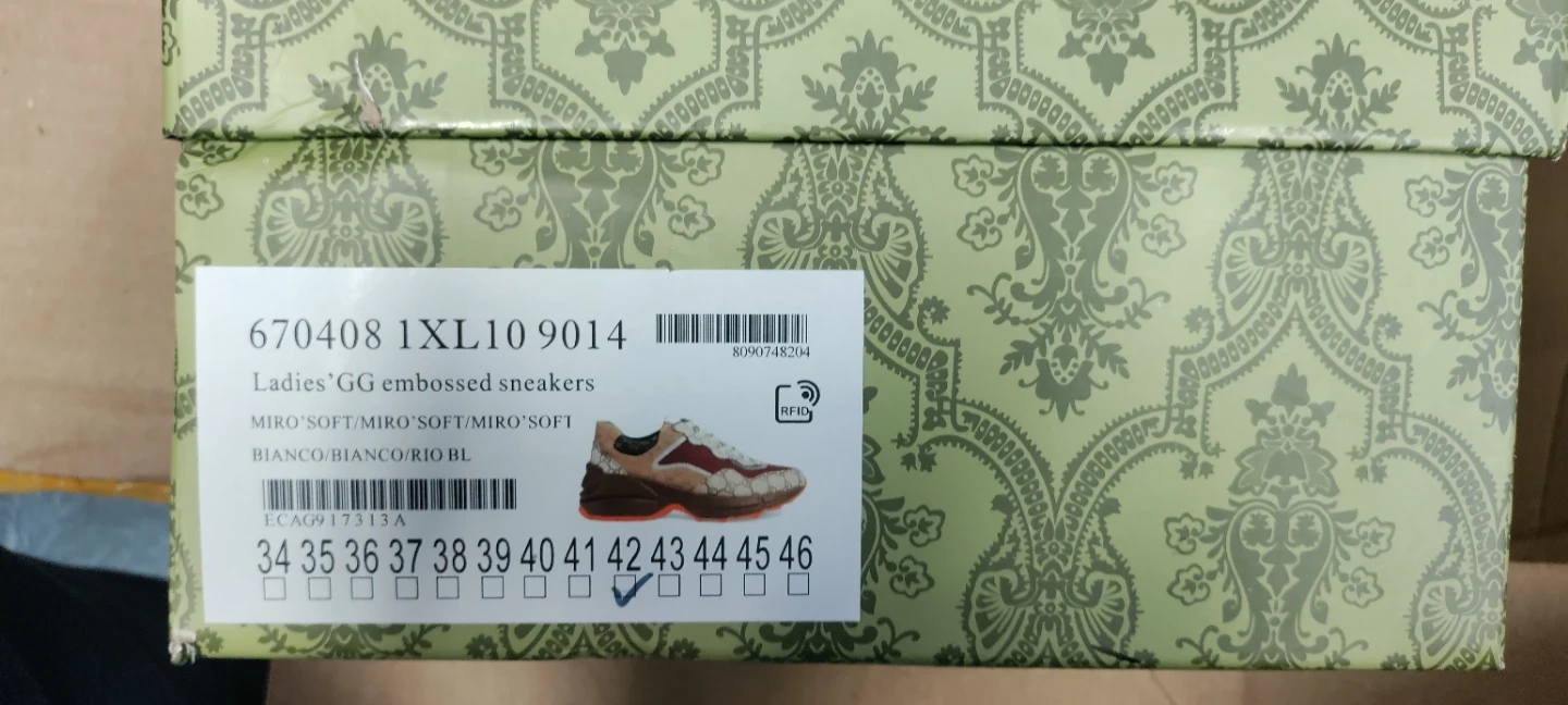 These Gucci sneakers feature the iconic GG embossed pattern. They're designed for a comfortable fit and stylish look. Includes box and gift bag.