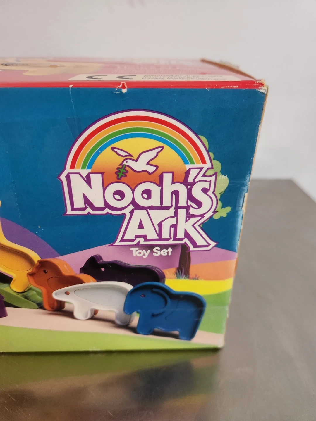 This Playskool Noah's Ark toy set features the ark, ramp, and six animal figures. It's made of colourful plastic.