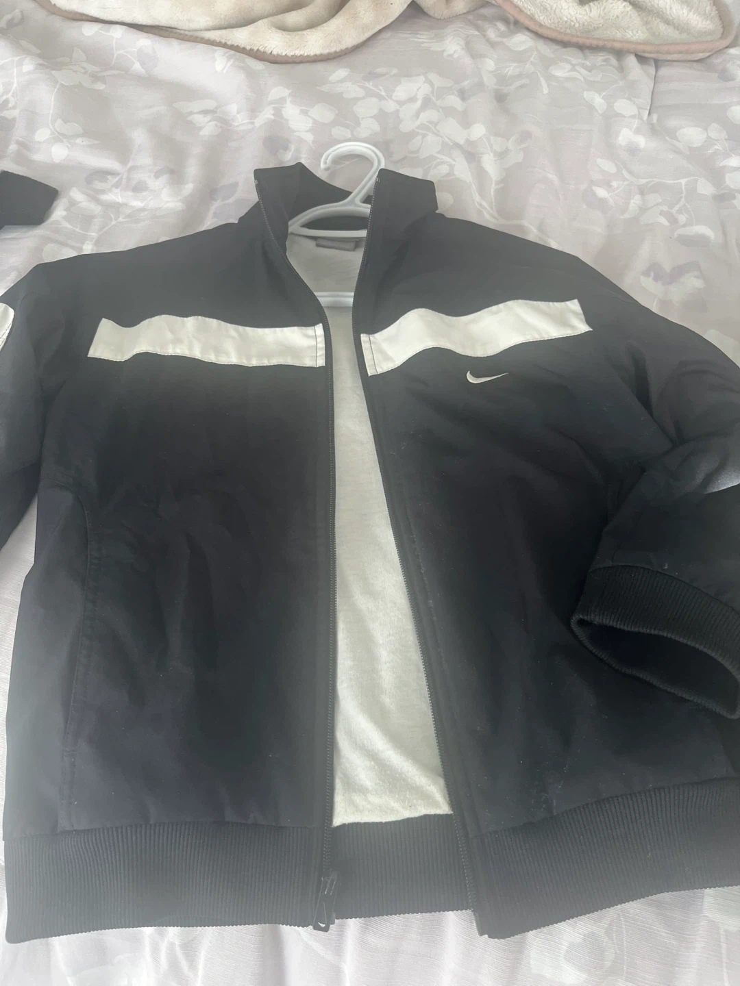 2 identical Nike Size 8 boys’ jackets. Perfect for sports or casual wear! Worn for only one week while on vacation. Washed and ready. $10 each. Pick up from smoke and pet free home in Cranston, Black Nike jacket with white detailing. It's a size S (8).