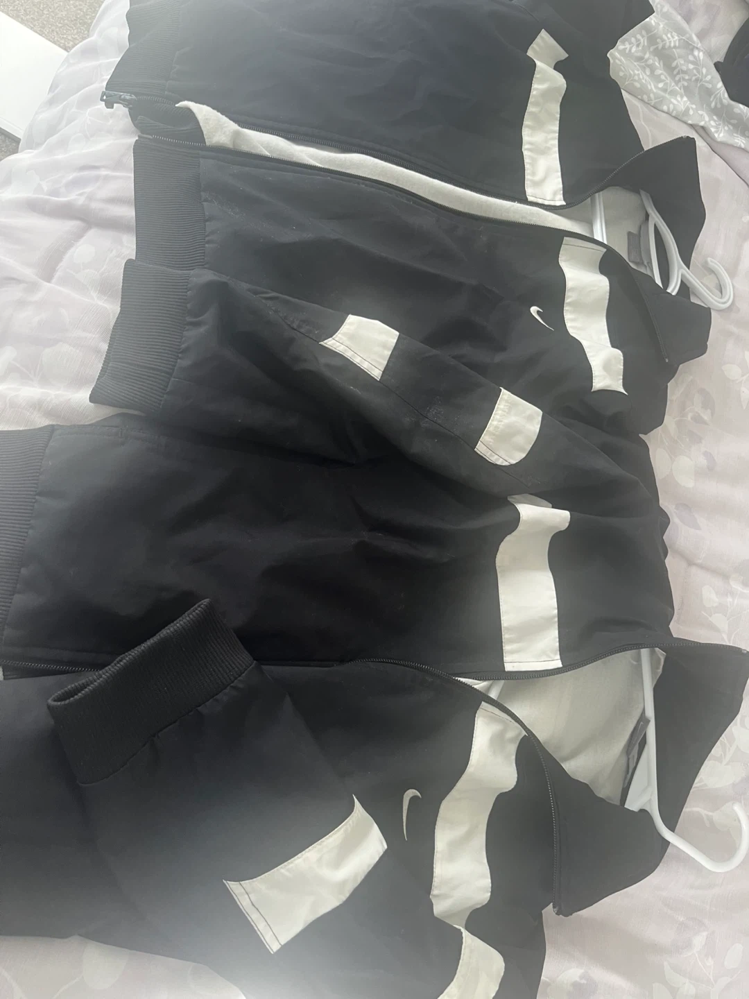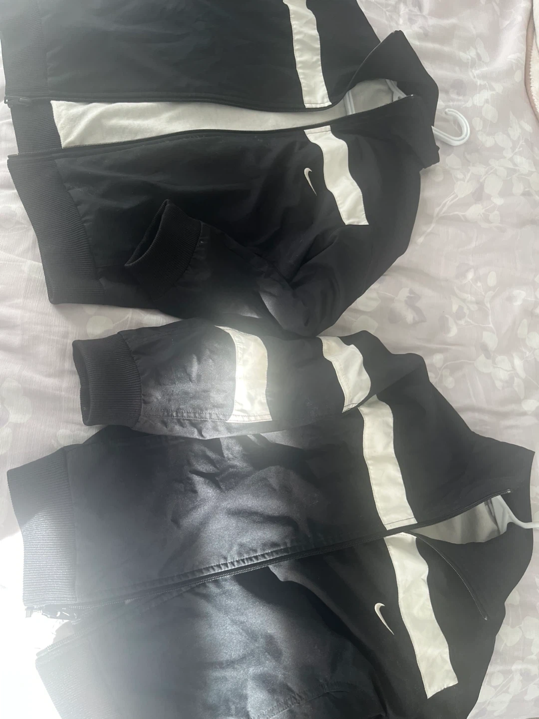 2 identical Nike Size 8 boys’ jackets. Perfect for sports or casual wear! Worn for only one week while on vacation. Washed and ready. $10 each. Pick up from smoke and pet free home in Cranston, Black Nike jacket with white detailing. It's a size S (8).
