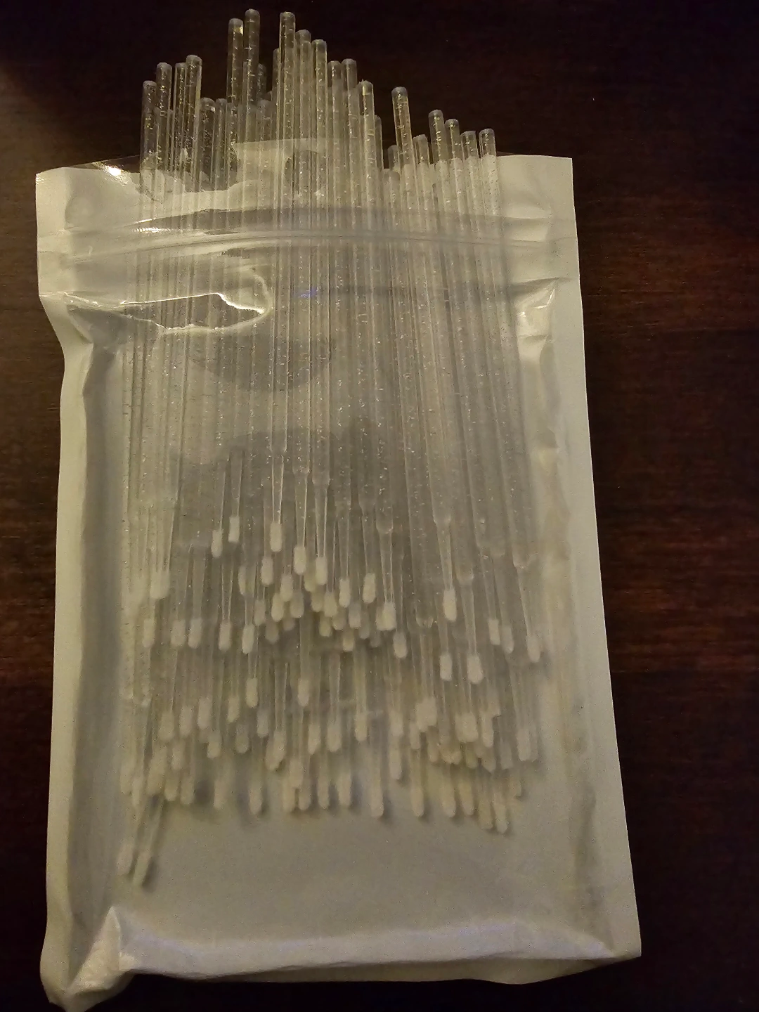 A bag of 200 clear micro applicator brushes. The brushes have a small, white tip. They are perfect for many uses, such as applying glue, paint, or other liquids in small amounts.