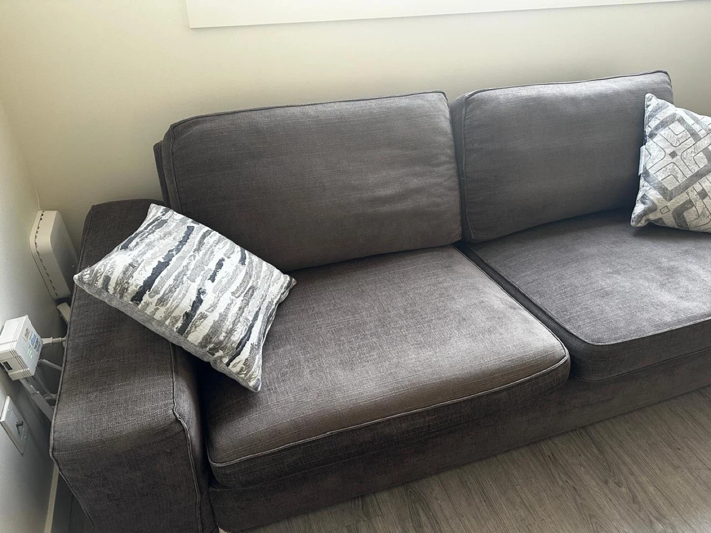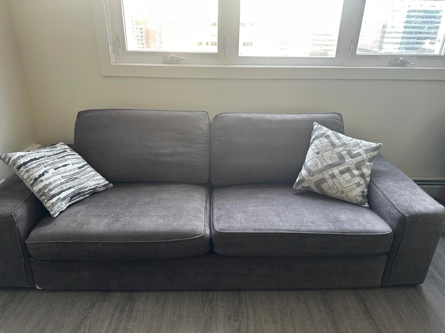Selling a comfortable gray couch from IKEA.