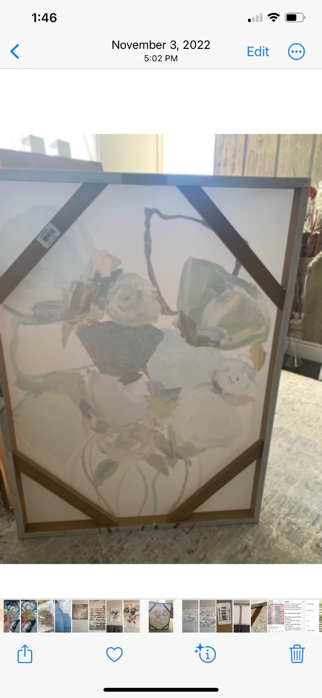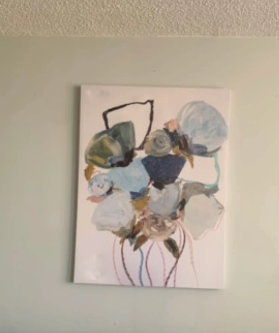 This canvas art print features a beautiful abstract floral design in soft blue, green, and white tones. It's a lovely piece for adding a touch of modern art to your home decor. The artwork is printed on canvas and framed, ready to hang.