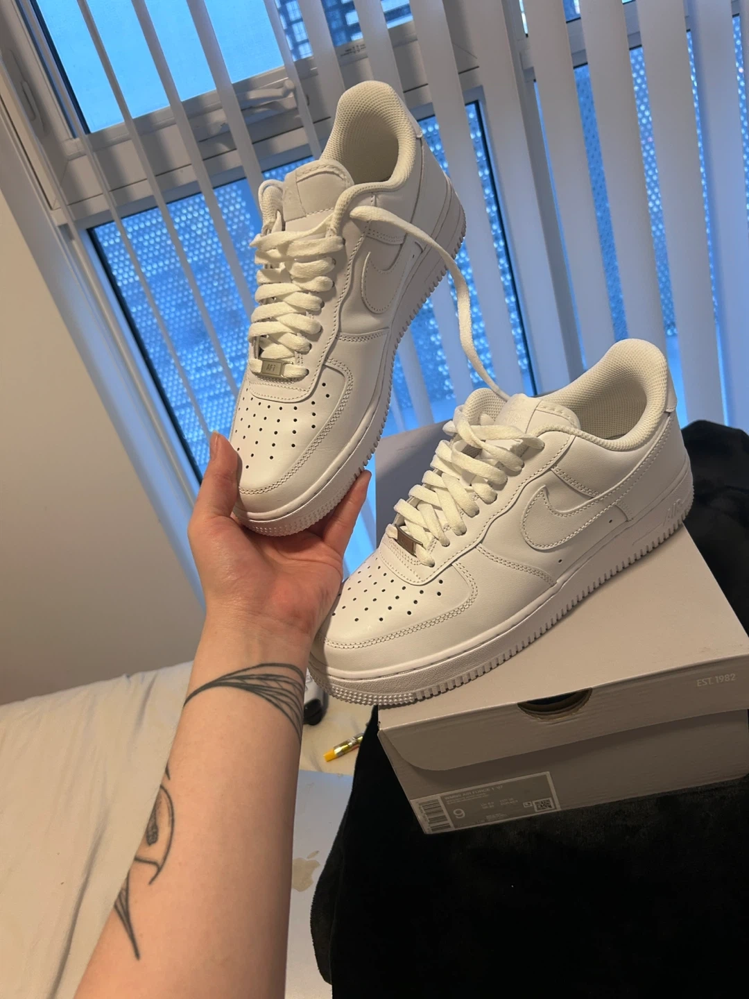 Selling my Nike Air Force 1 (women’s size 9). They are brand new, I only tried them on once but they’re too big for me, so I’m selling them.