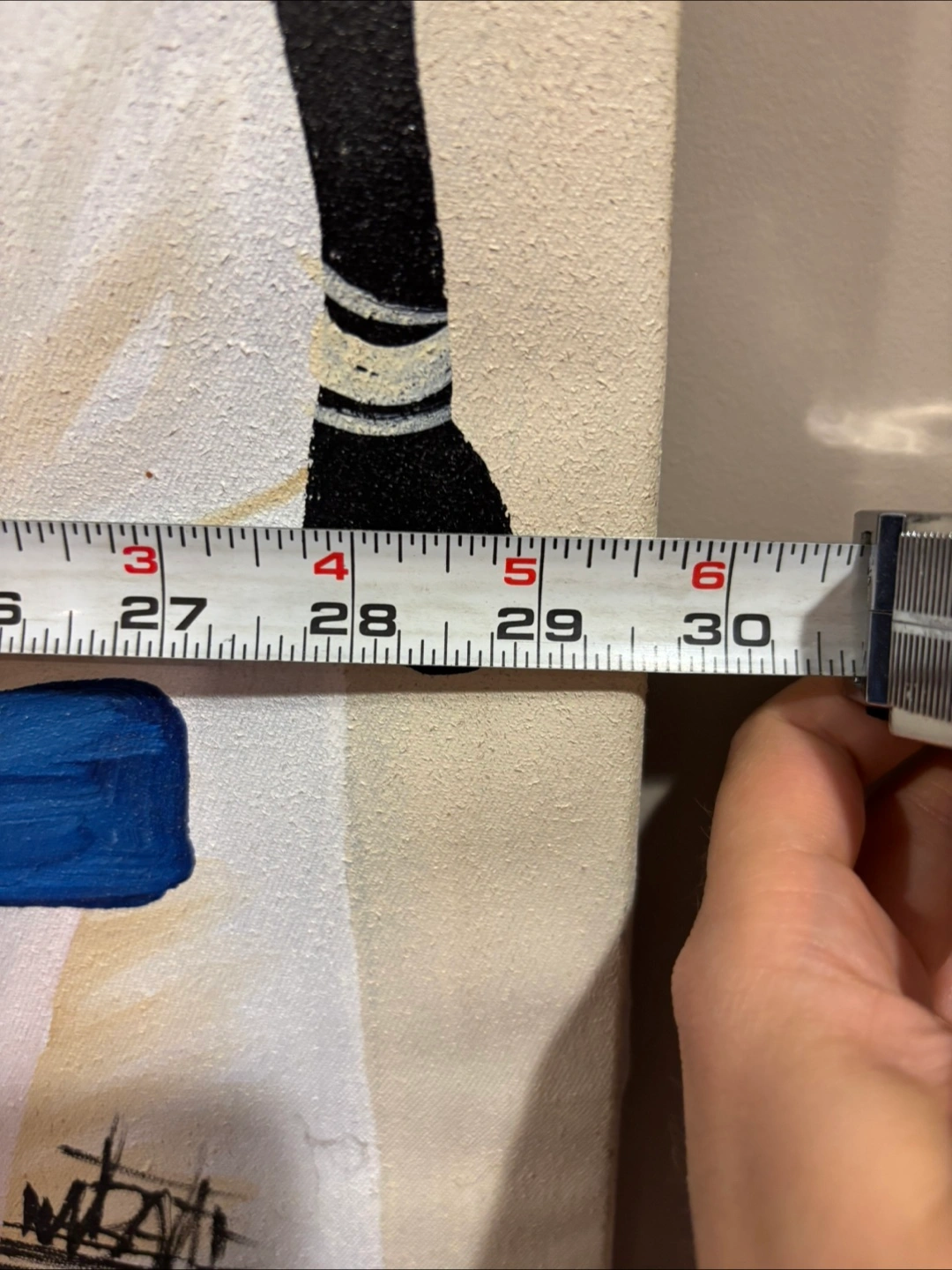 It measures approximately 30 inches wide and 39.5 inches tall on a wooden canvas.