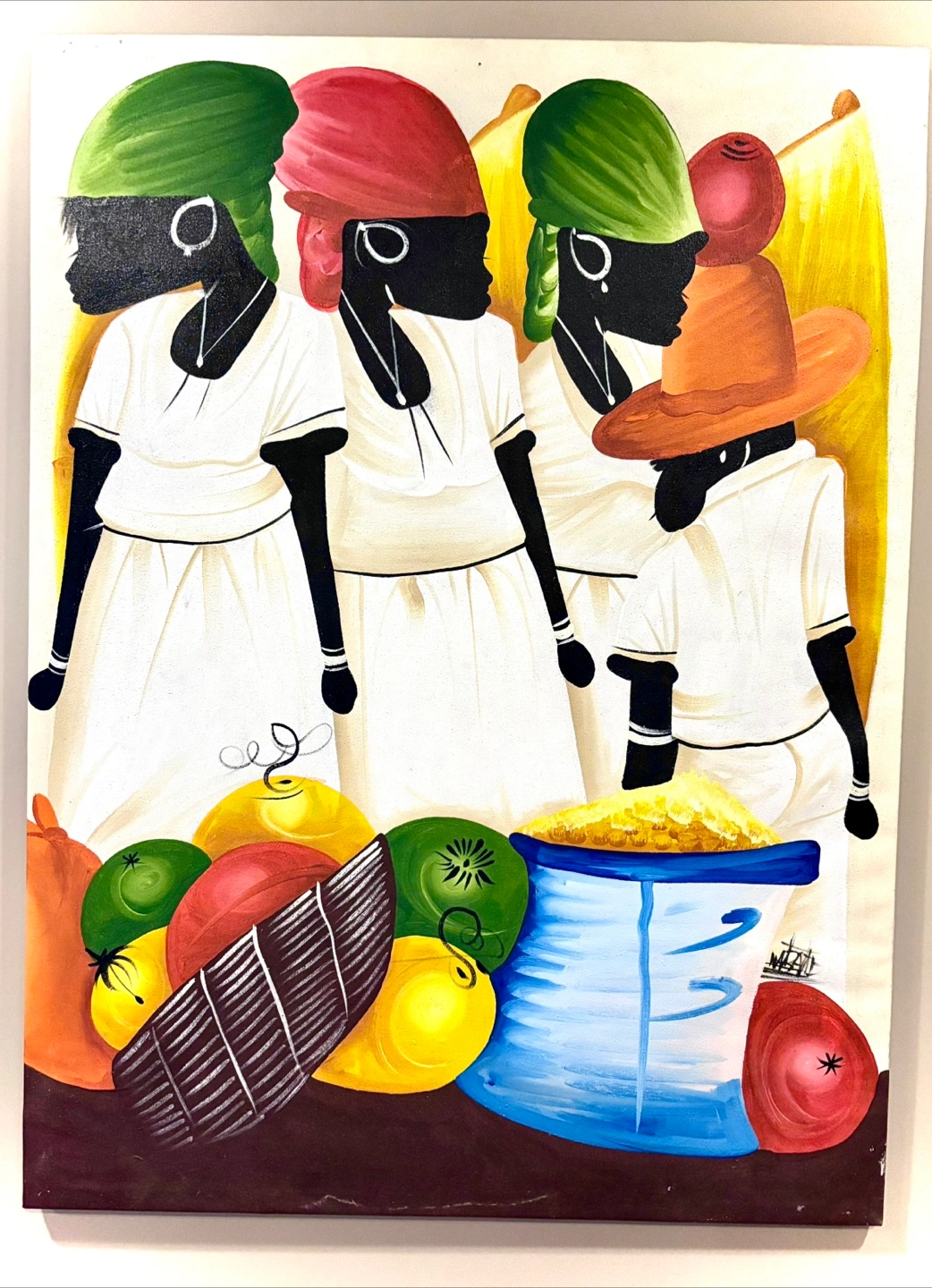 The painting captures the essence of Caribbean culture through its subject matter and artistic style, often characterized by bright colors and depictions of daily life.